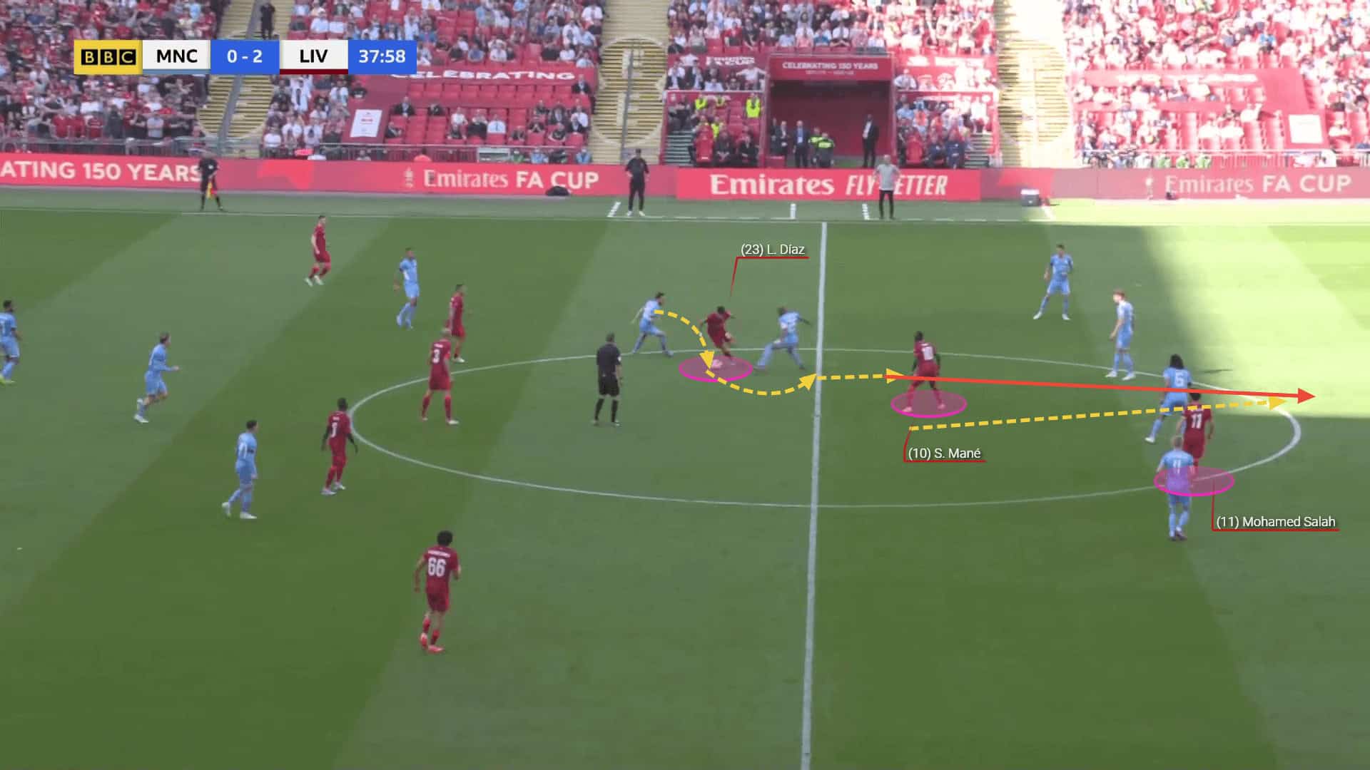 It is unclear if Klopp would give Diogo Jota the starting spot or if he would rather rely on Luis Díaz. Both players could give the team an advantage in certain areas. Jota’s headed attempts on goal could increase the team’s chances in attack, although Wolverhampton, among with Man City, are the teams with the fewest conceded goals from headshots (1). Díaz’s dribbling and creativity, on the other hand, could be very beneficial against Wolves’ overloaded and structured defence. His ball control and positioning could help the Merseyside place between the lines and exploit spaces providing both indirect and direct threat.