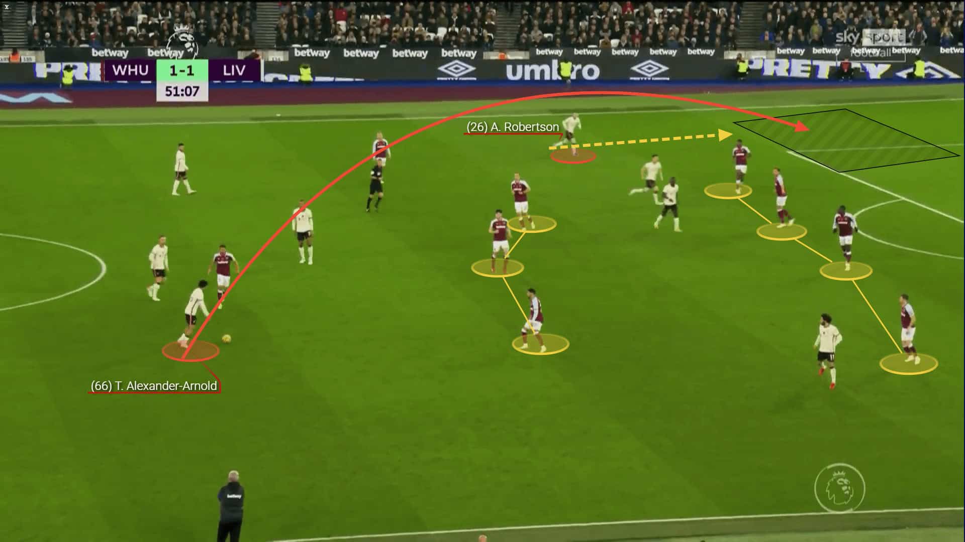 This is also valid for defending set-pieces. Liverpool’s ability to take advantage of their set-plays is another threat that requires increased awareness and anticipation skills by the Arsenal players. This is another area where Alexander-Arnold excels. The Merseyside have scored six goals from set-pieces so far this season and it is safe to say that they utilise their chances. While Arsenal have only conceded twice from such situations this term, the risk is always greater when you have the most efficient attack in the league against you.