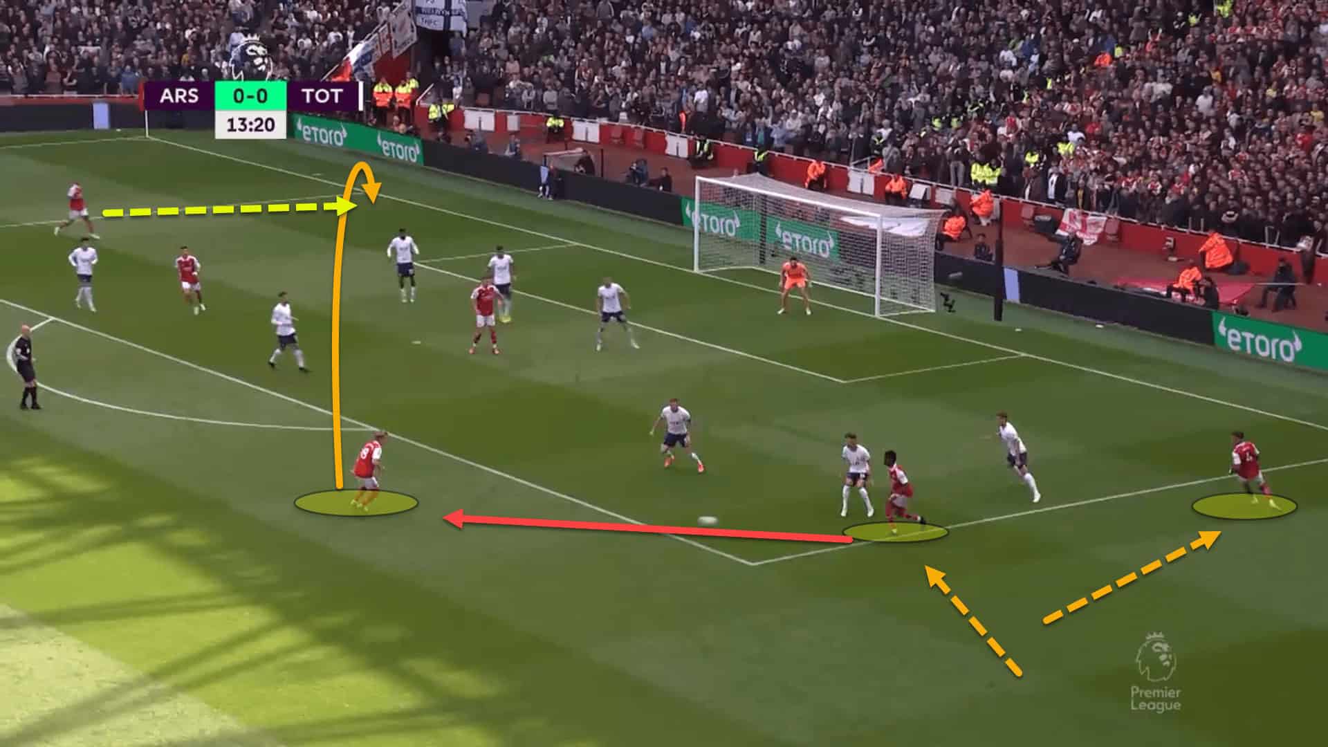 This was a move that Arsenal attempted on numerous occasions against Tottenham and one which worked really well for them. It even led to the opening goal of the game.