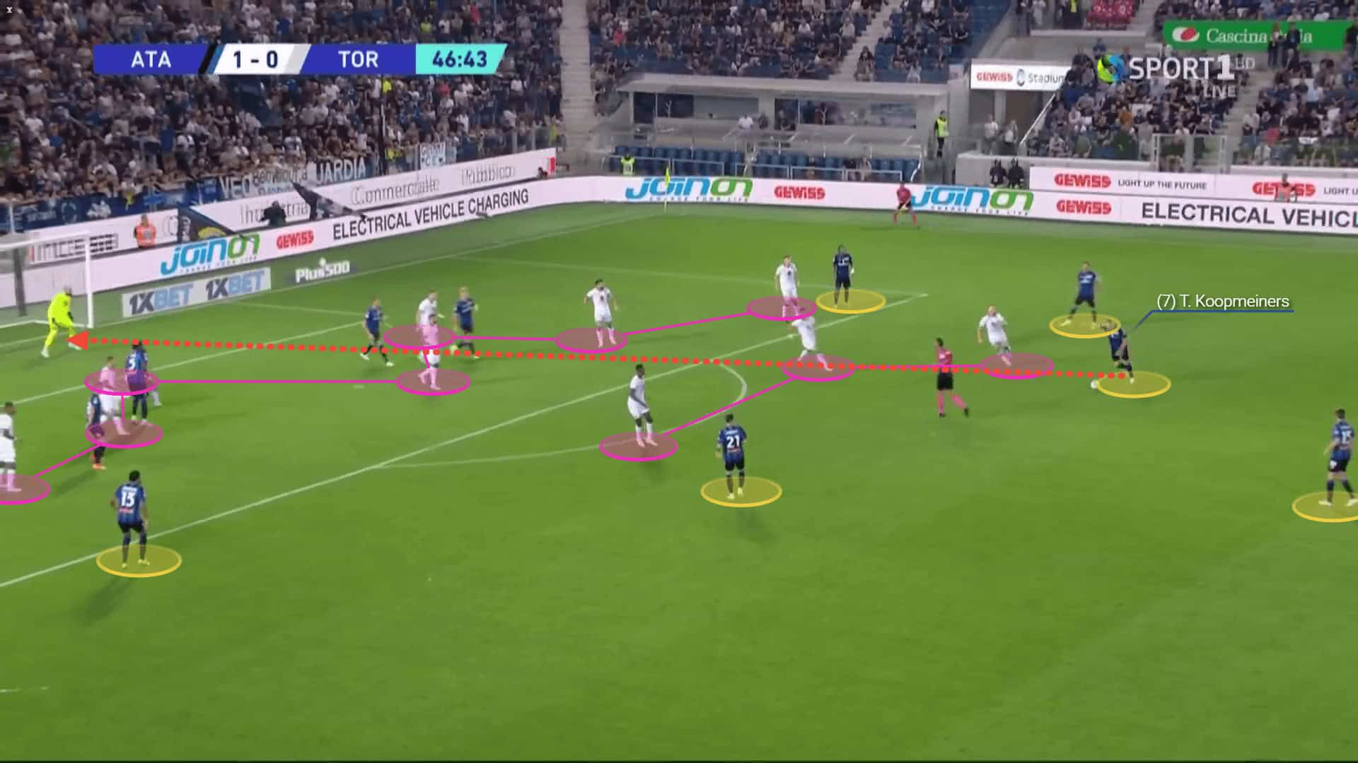 The Dutch will need to be with increased awareness and stay deeper than usual if he wants to avoid leaving gaps for Kvaratskhelia to exploit. The strong defensive organisation will be crucial for La Dea, as the wing-back will need additional support to be able to stop the Georgian. Closing out space with the help of a midfielder and a centre-back will be important, however, as mentioned, De Roon’s absence significantly decreases the team’s stability out of possession.