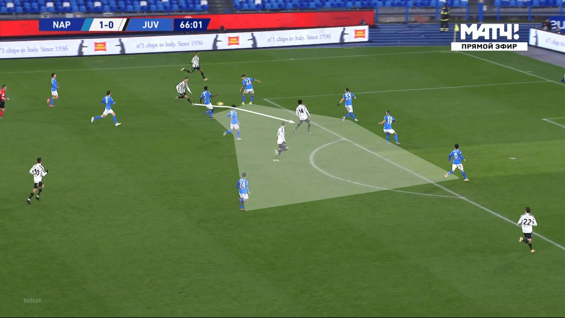 Juventus did something very similar against Napoli. Ronaldo drew two defenders before releasing his pass to McKennie. The American took an aggressive touch into the box, entering through the half space. Though he was unable to unleash a shot, this move shows the I Bianconeri’s intent.