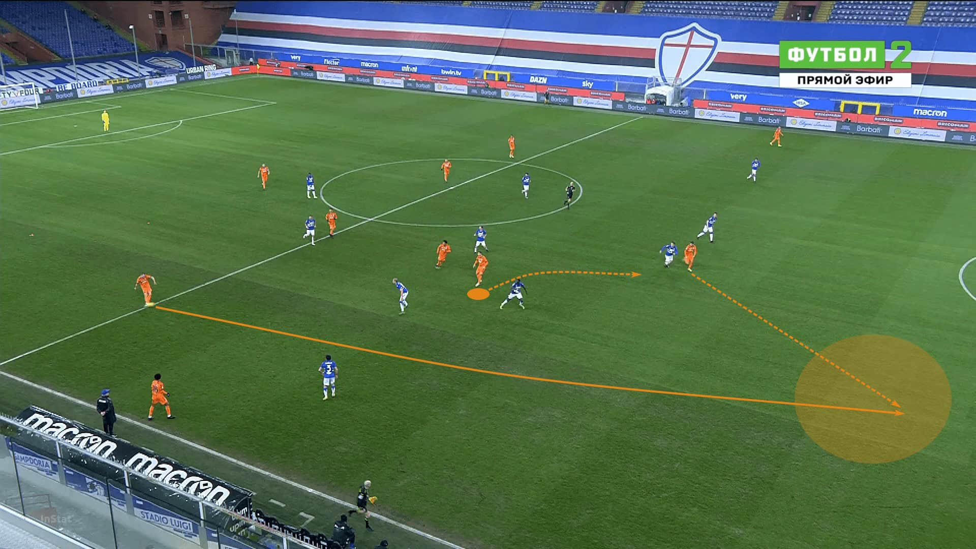 Sporting managed to beat the first defender, pin the second and play the runner into the half space of the box.