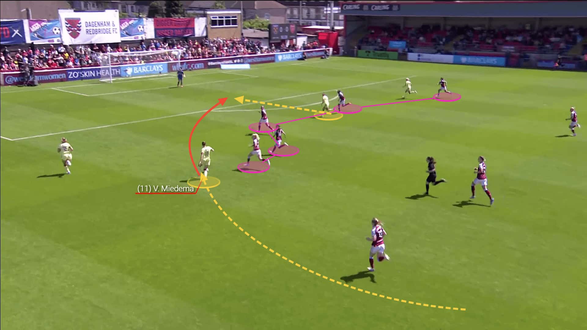If the Chelsea player manages to keep Wilms away from supplying the attack with crosses, her team have a much higher chance to counteract the Netherlands successfully. That’s due to the strong partnership between Sweden’s centre-backs. Magdalena Eriksson and Amanda Ilestedt complement each other’s movement which gives the team confidence both in and out of possession.