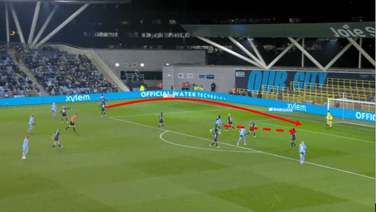 This is an excellent example of Ramirez’s understanding of in-the-box positioning combined with her technical quality to finish off awkward chances. Given that the game against City is likely to come down to small margins, this level of quality could prove to make a significant impact on the outcome of the game.