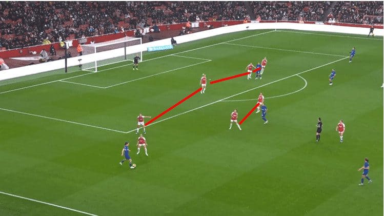 Then comes the Chelsea side and how to defend against them. Arsenal again showed a different approach to defending against Chelsea, which City could potentially copy. Arsenal operated a disciplined 4-2 defensive shape with the two deep midfielders Lia Wälti and Victoria Pelova playing deep and aggressive centrally, enabling them to control the middle of the field during the game.