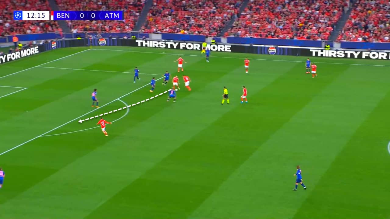 The first Benfica goal was scored mainly thanks to Aursens’ excellent vision and assist that broke Atlético Madrid’s defensive line and allowed Aktürkoğlu to be in a one-on-one situation with Oblak.