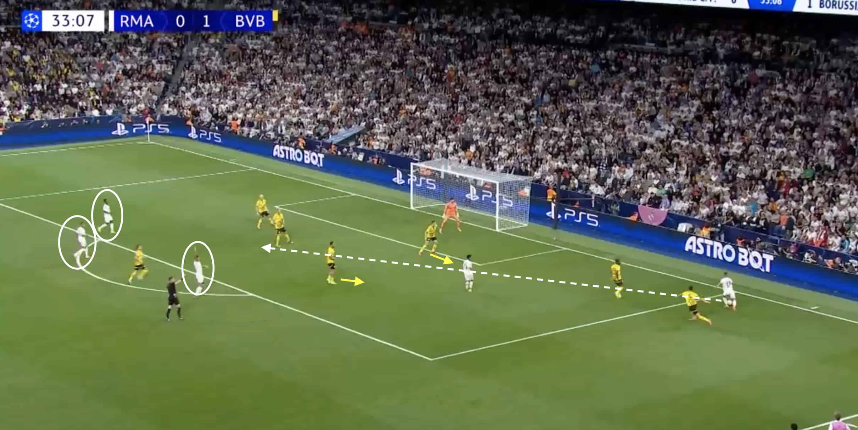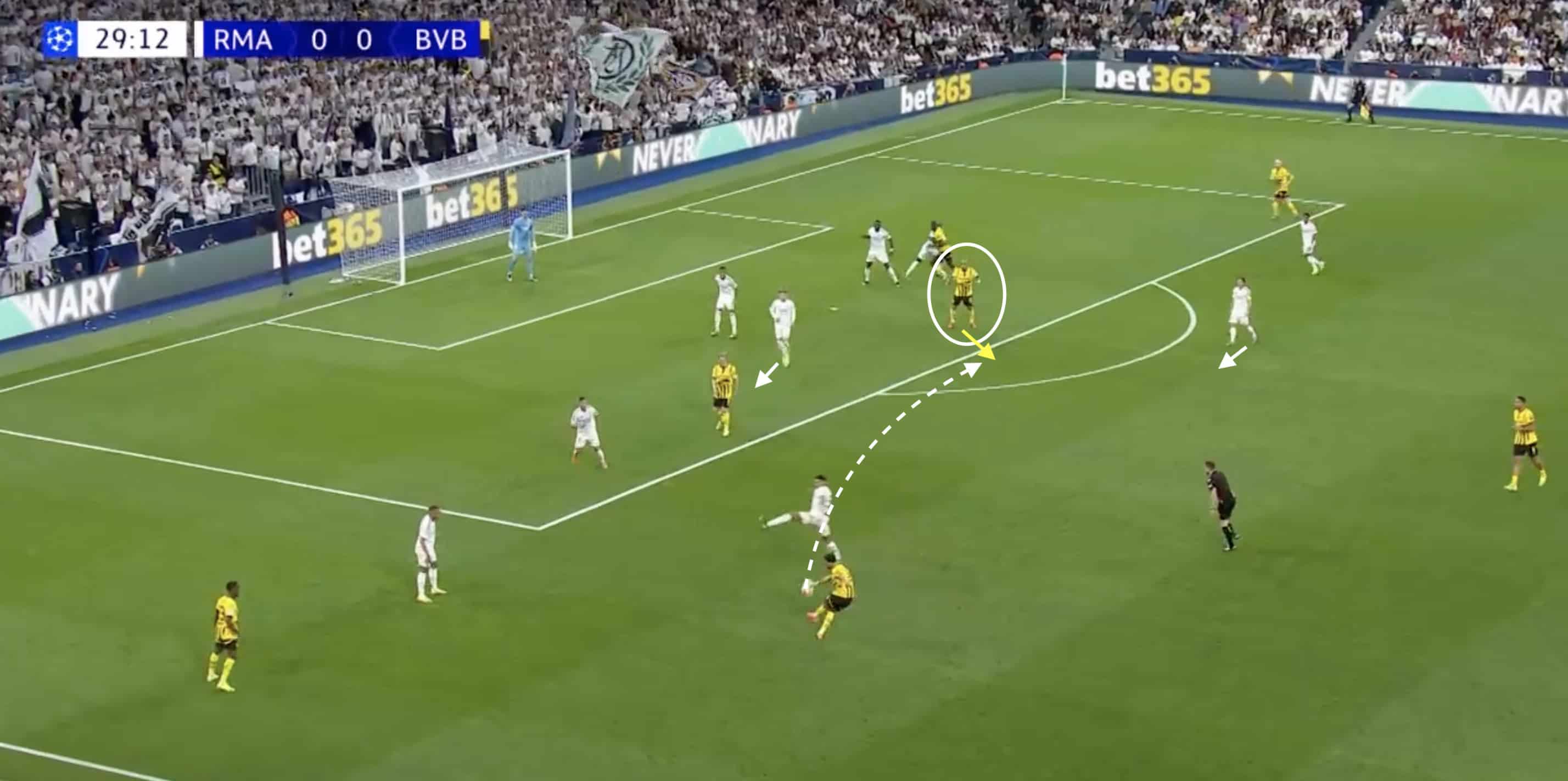 Dortmund’s problem was that once Guirassy or Brandt could take control of the ball in the middle third, they lacked the necessary spark to attack Madrid quickly in transition; perhaps they underestimated how useful Gittens’s speed was going forward.