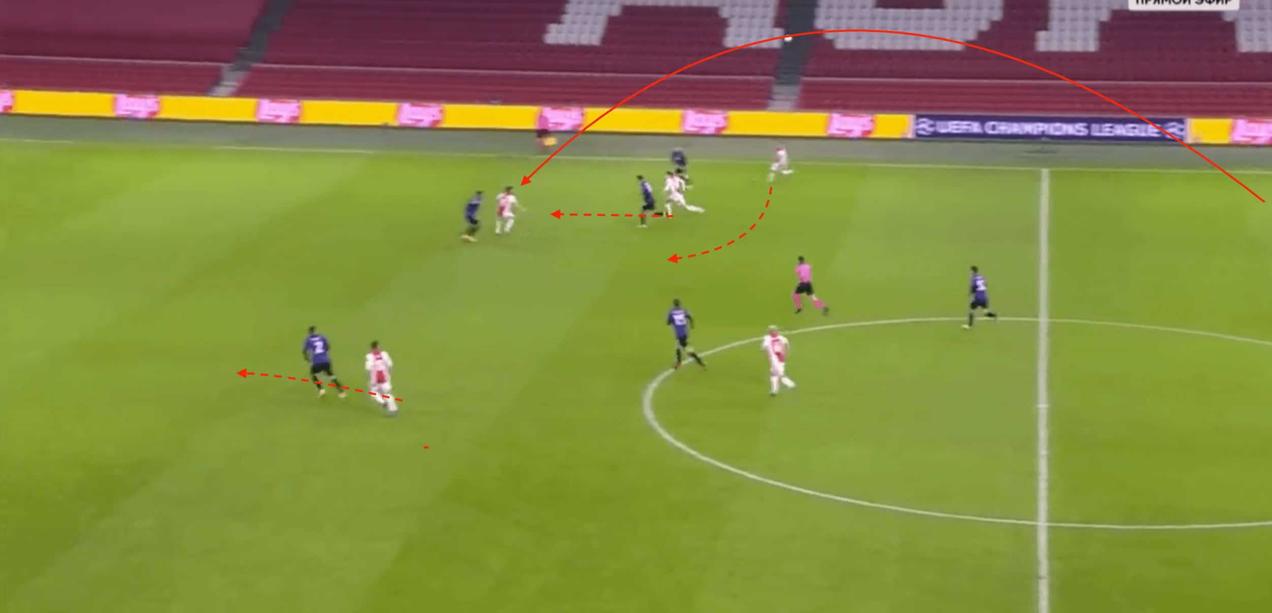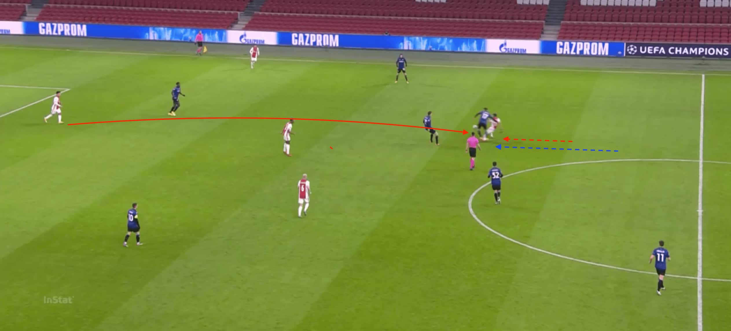 Needing to clinch a win, Ajax’s hand will be forced as they push numbers forward to try and put themselves in the driving seat early on. This presents the Serie A side with opportunities to capitalise on the lack of opposition numbers behind the ball and the subsequent spaces that emerge. Therefore, Ajax will need to be mindful of their defensive balance and reorganisation during transitional moments.
