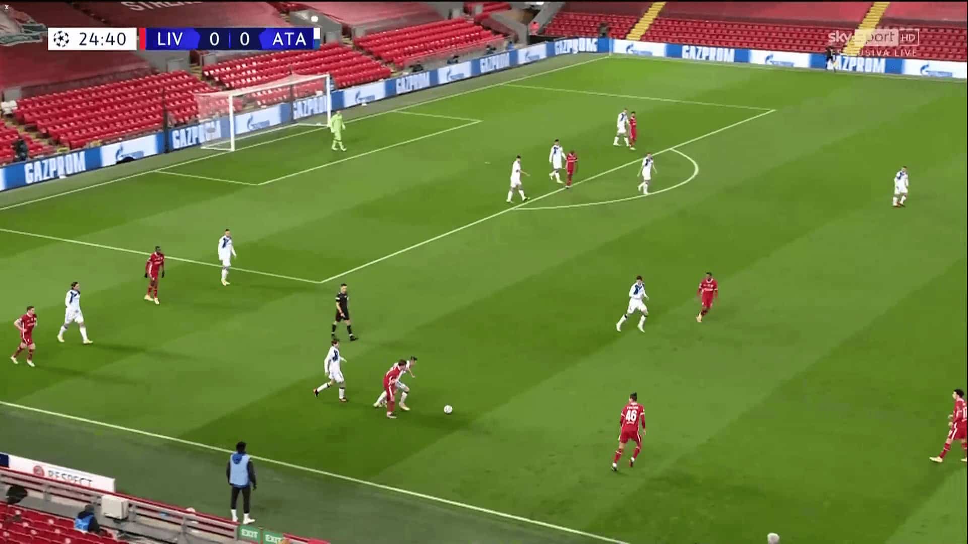 The Reds’ attacking explosiveness was lacking and they often didn’t have enough bodies upfront in order to keep the dynamics up and pressurise Atalanta’s defence. The connection between the lines wasn’t as tight as usual which didn’t allow Liverpool to successfully counter-attack. Instead of taking advantage of their recoveries and catching the opposition of guard, they allowed La Dea a lot of time to move into defence.