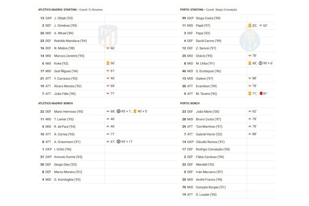 Wednesday evening saw Atletico Madrid vs Porto in the UEFA Champions League.