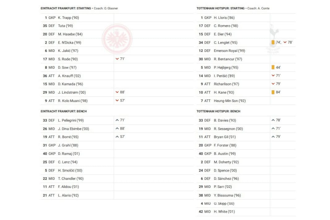 Tuesday night saw Frankfurt vs Tottenham in the UEFA Champions League.