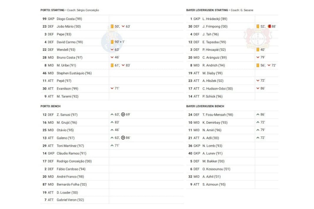 Tuesday night saw Porto vs Leverkusen in the UEFA Champions League.