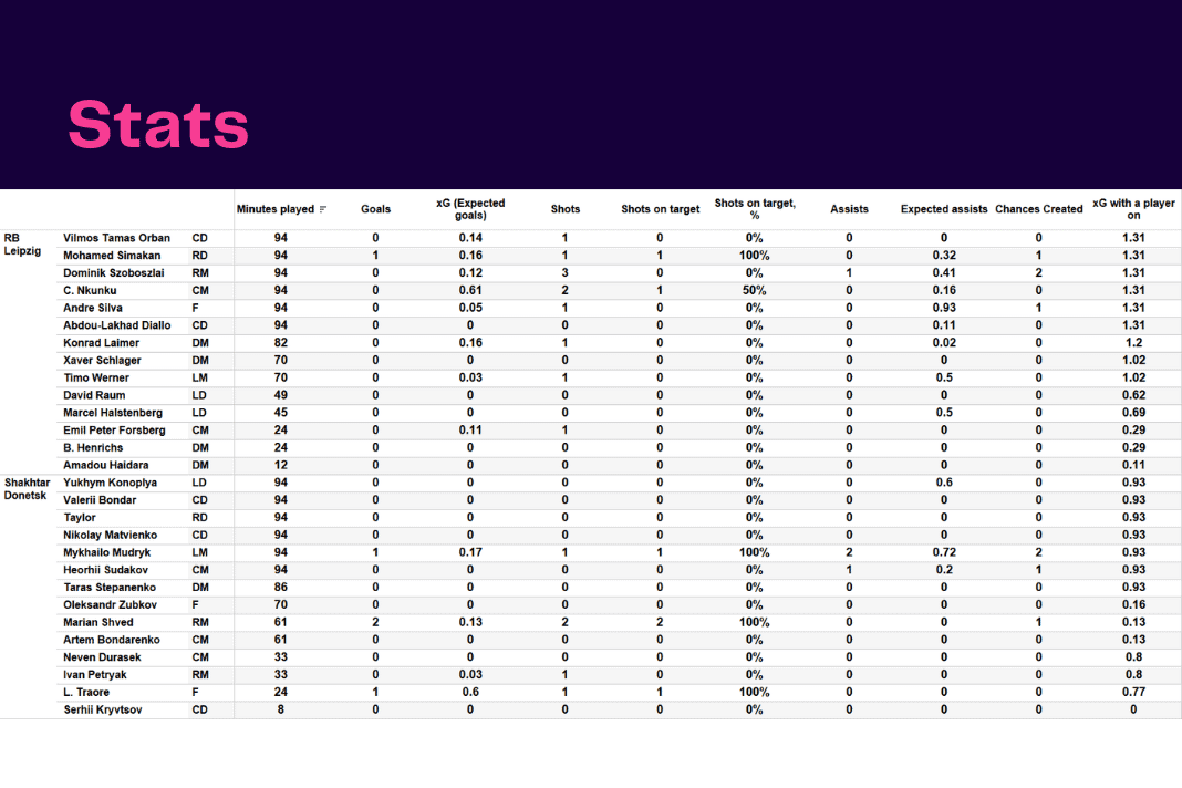 UEFA Champions League 2022/23: RB Leipzig vs Shakhtar - data viz, stats and insights UEFA Champions League 2022/23: RB Leipzig vs Shakhtar - data viz, stats and insights