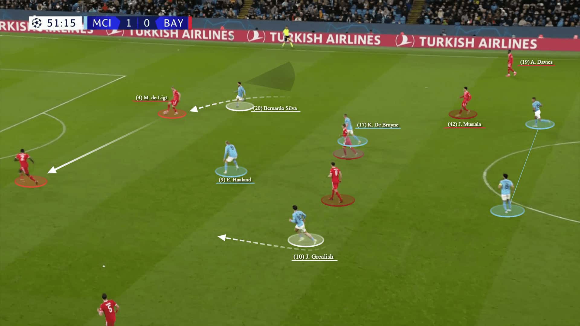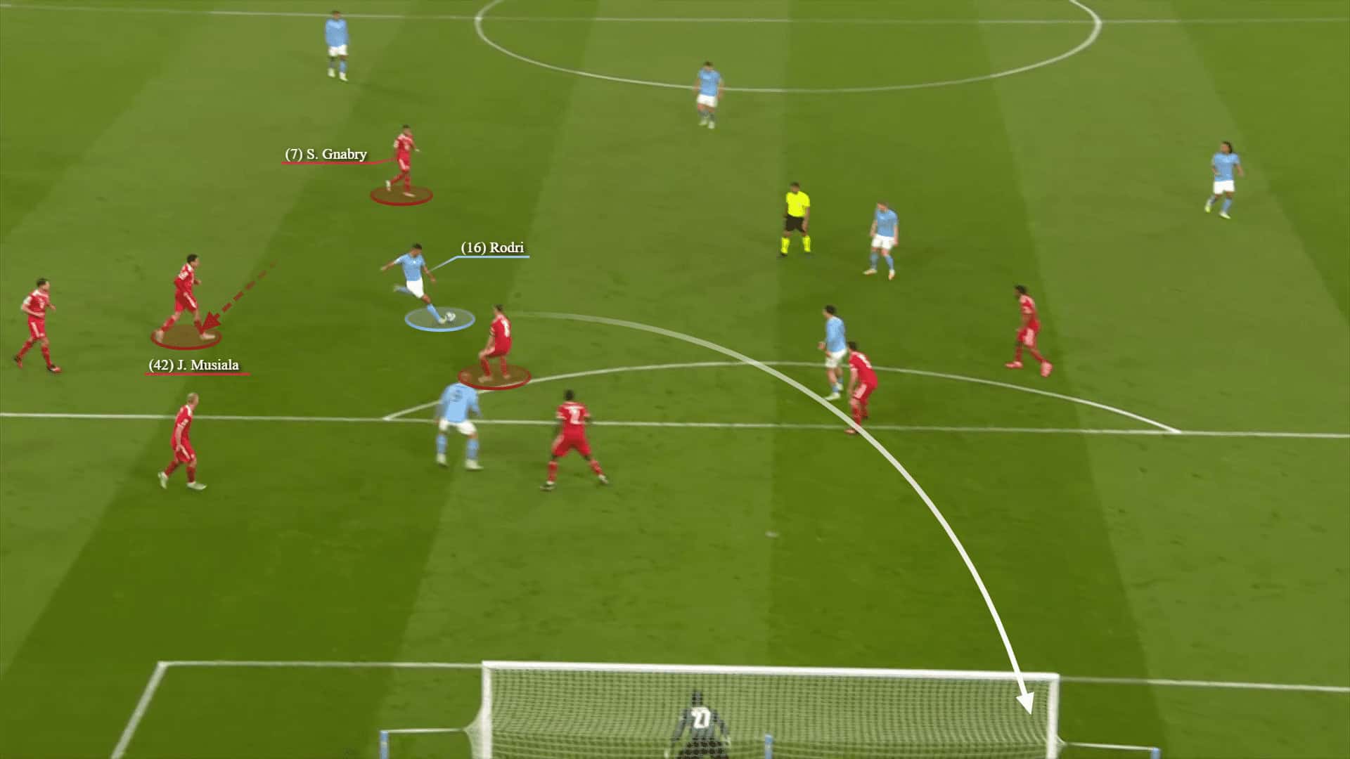 Musiala tried to go back quickly but Rodri was brilliant to overtake him and then scored from a curvy shot with his weak foot to make it 1-0 to the hosts.