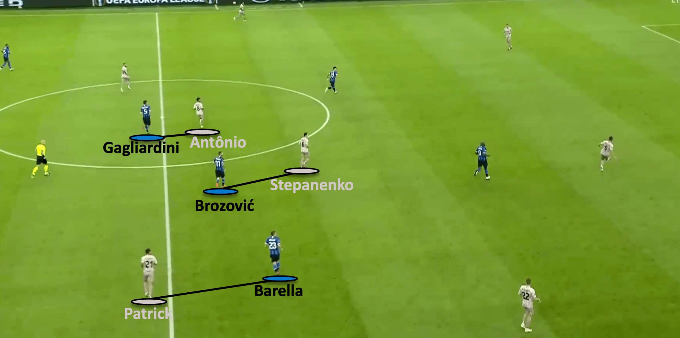 We can see Brozović marking Stepanenko, You