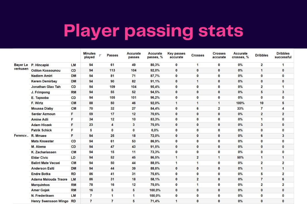 in Bayer Leverkusen, Data Analysis, Europa League, Ferencvárosi TC, Match Analysis, Stats Pack