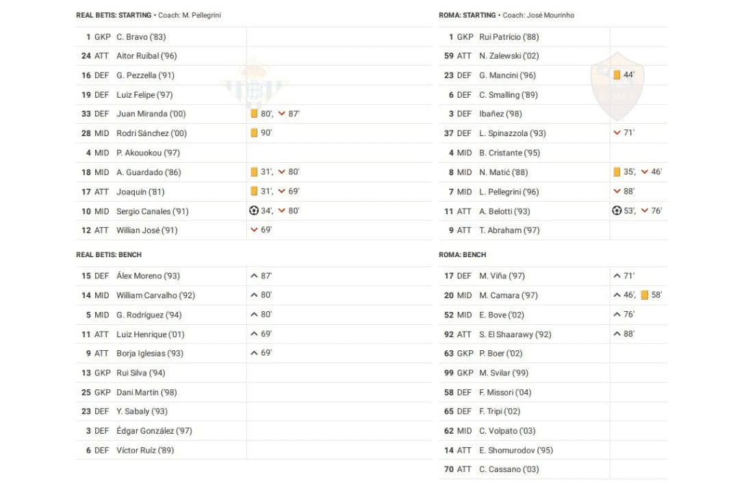 Thursday evening saw Betis vs Roma in the UEFA Europa League.