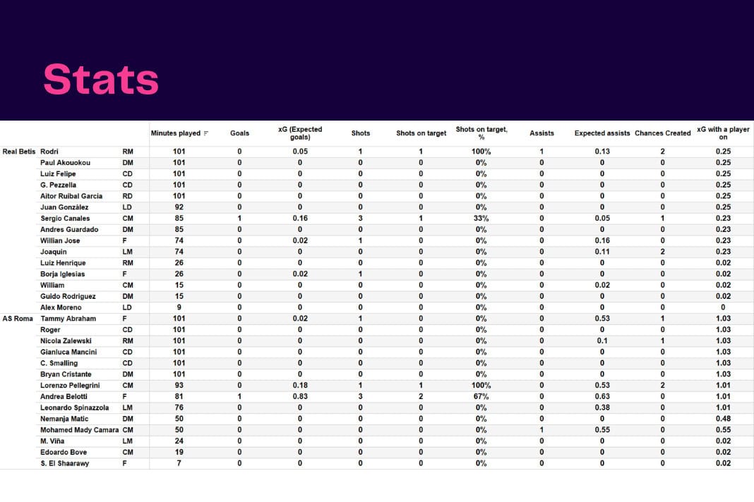in AS Roma, Data Analysis, Europa League, José Mourinho, Manuel Pellegrini, Match Analysis, Real Bétis, Stats Pack