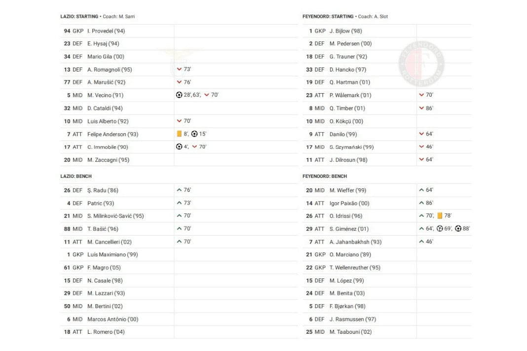 Thursday evening saw Lazio vs Feyenoord in the UEFA Europa League.