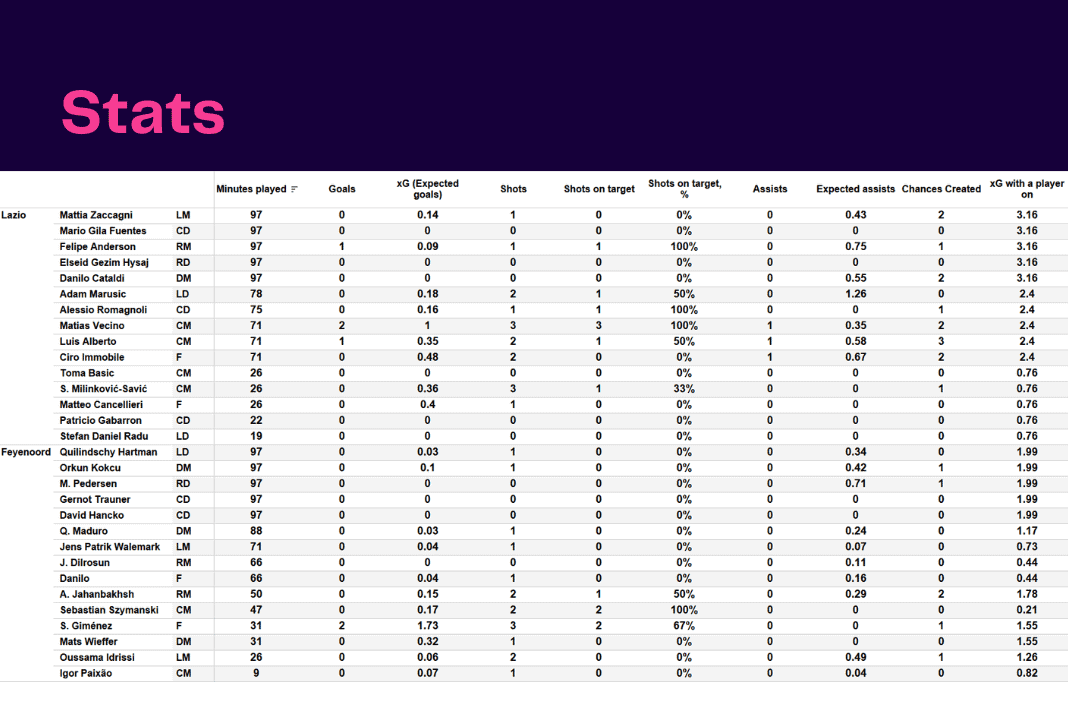 UEFA Europa League 2022/23: Lazio vs Feyenoord - data viz, stats and insights
