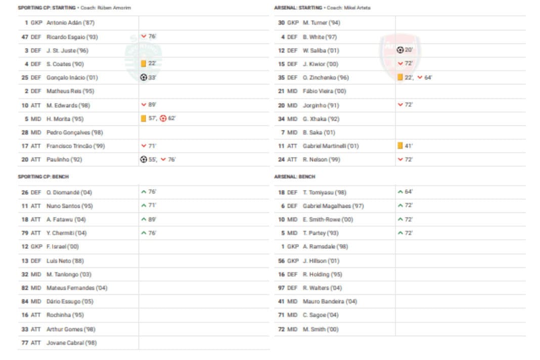 Thursday saw Sporting CP vs Arsenal in the UEFA Europa League.
