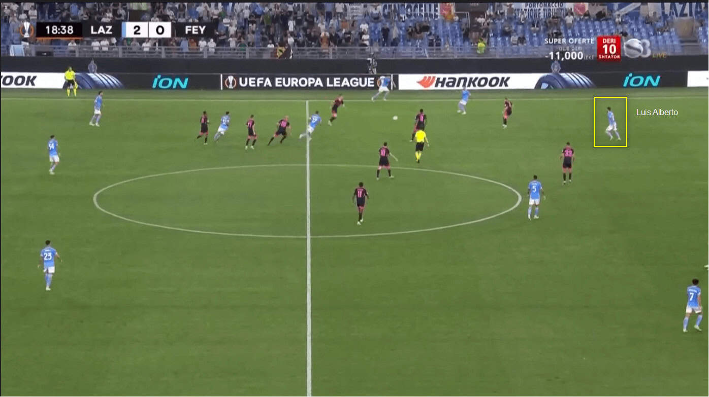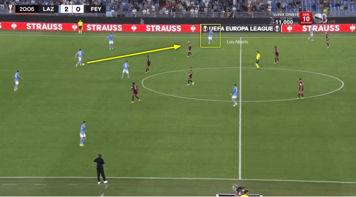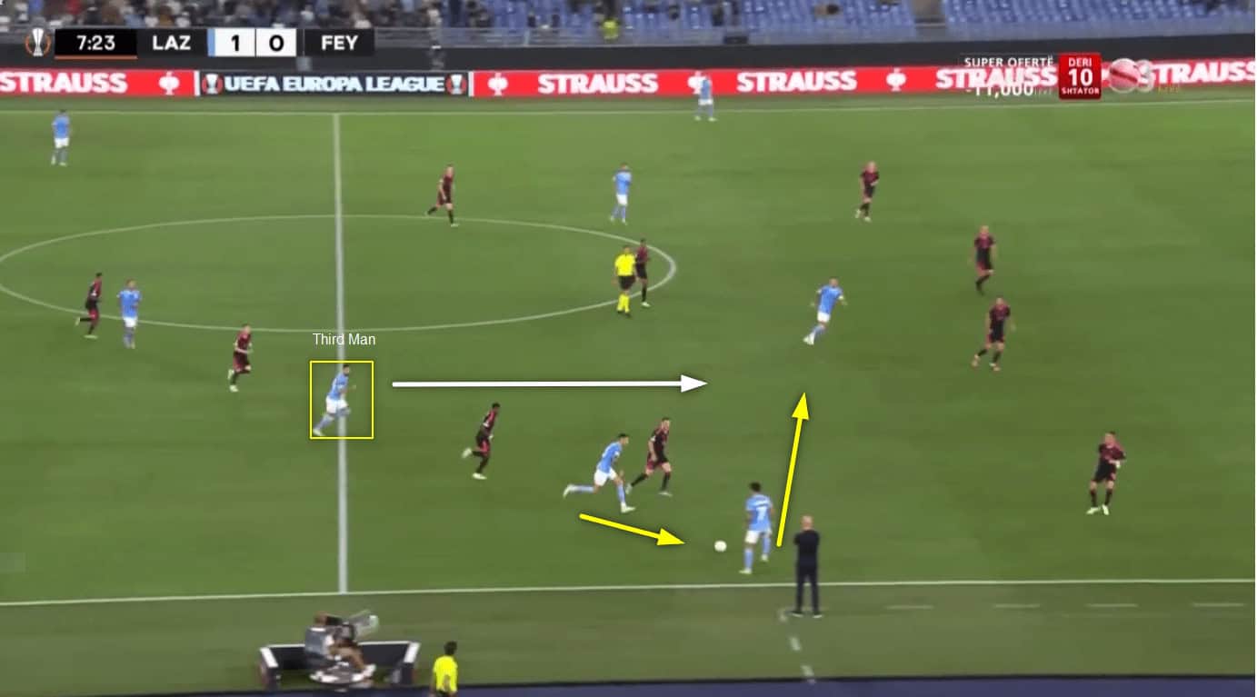 The movement from Lazio’s third man is what was able to break Feyenoord’s press and defensive shape, which allowed them to attack so well throughout the game.