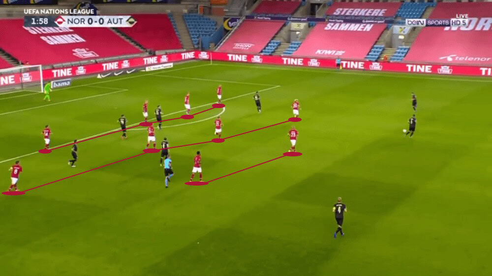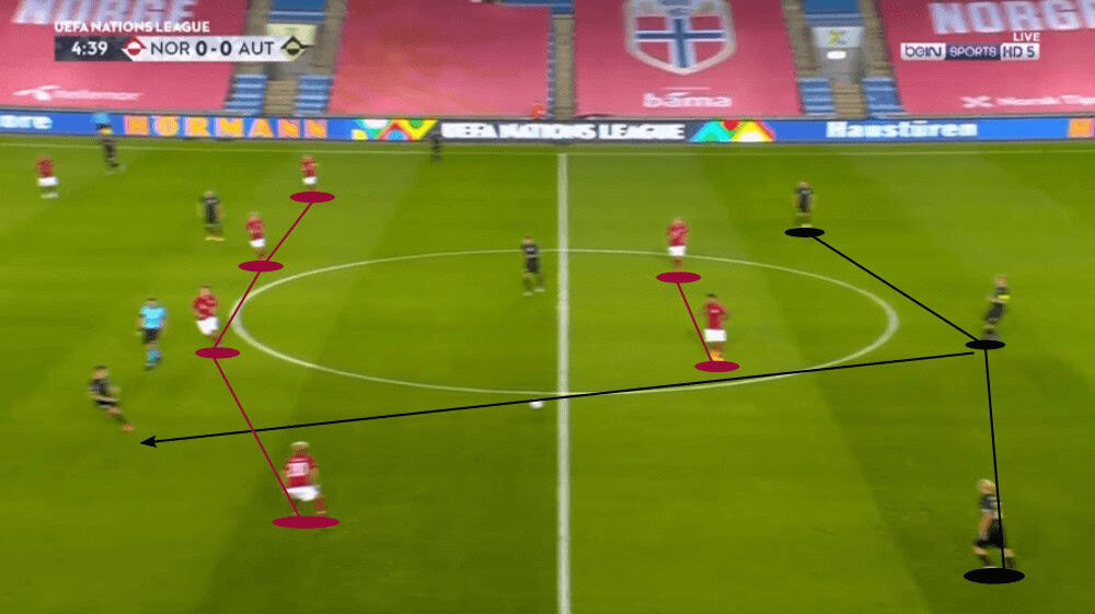 Austria’s build-up structures and Norway’s compact 4-4-2