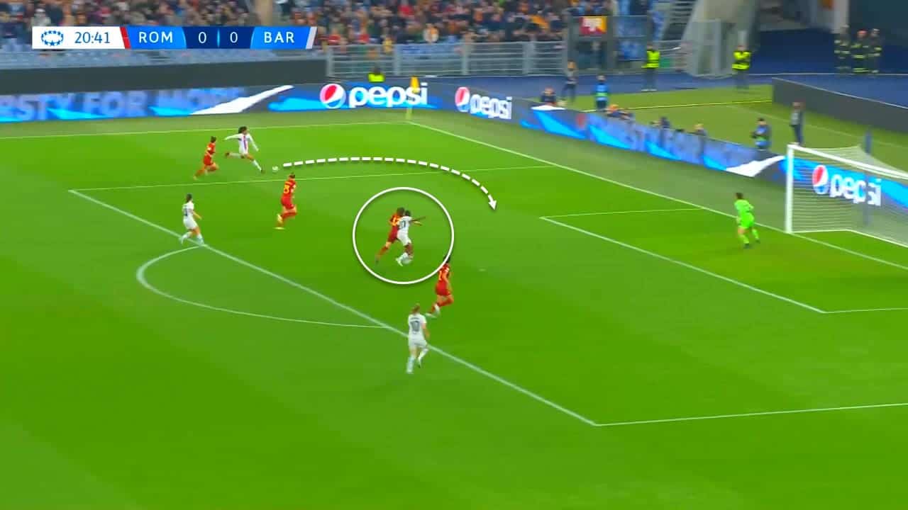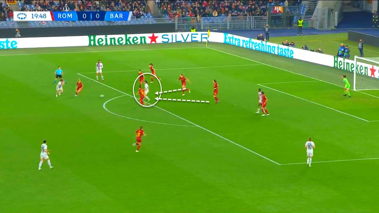 Also, the fact that Bonmatí was surrounded by four Roma players in this picture shows how reactive Roma’s defence was.
