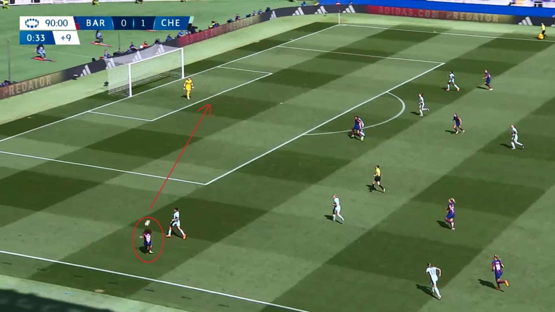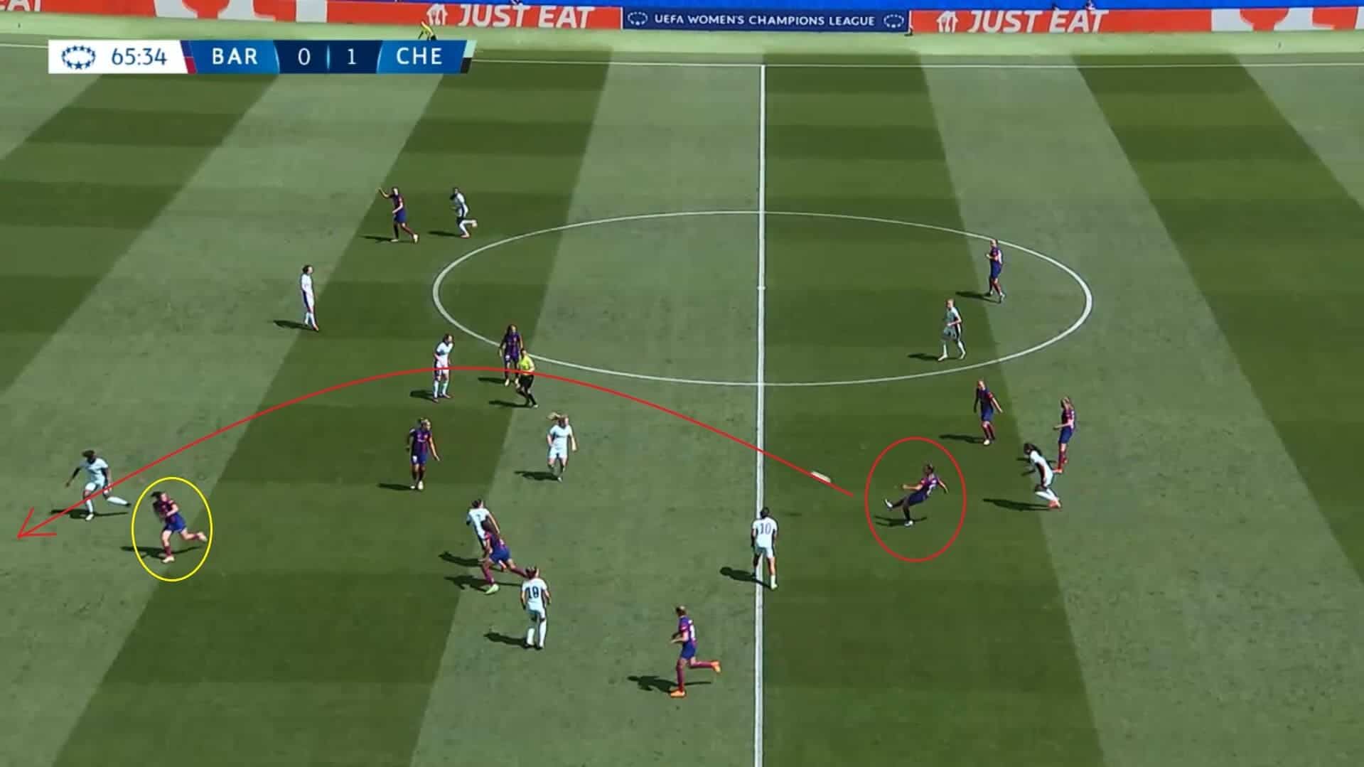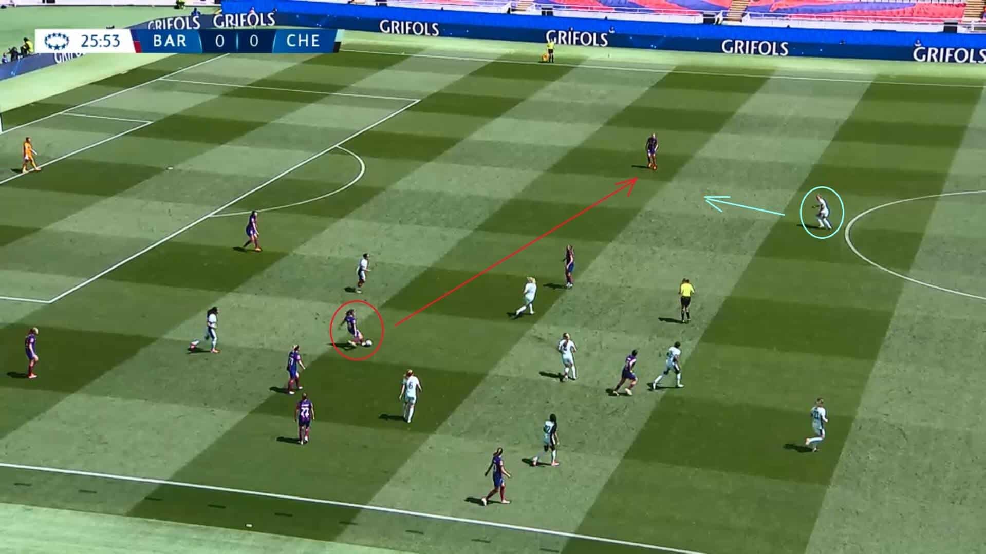 There were several reasons for this, one of which was that the defending champions could implement more direct tactics. Guijarro was capable of making the aerial passes that Giráldez felt would bypass the Chelsea Women midfield threat. This did lead to more chances being created, as the likes of Caldentey and Paralluelo were found more often.