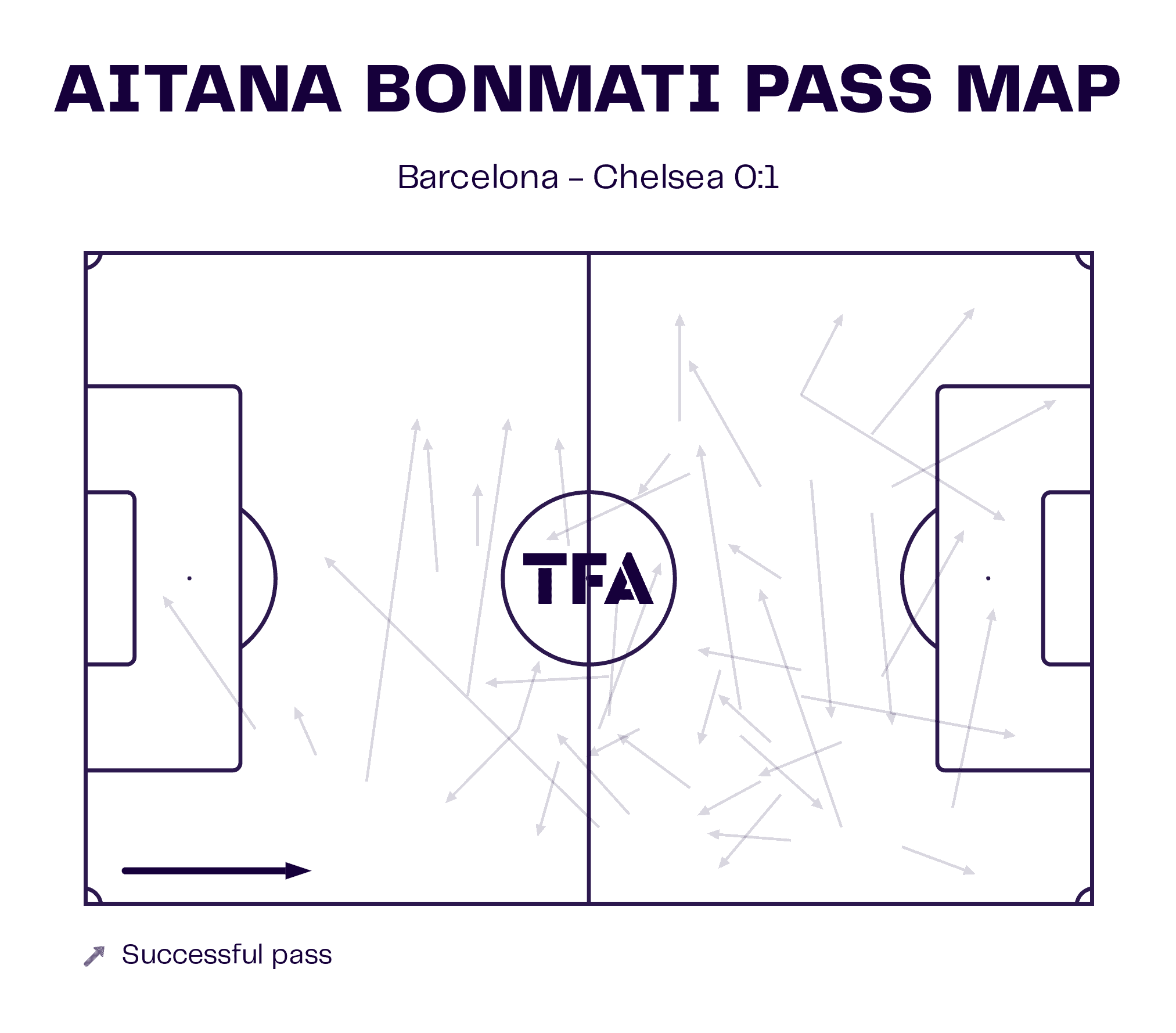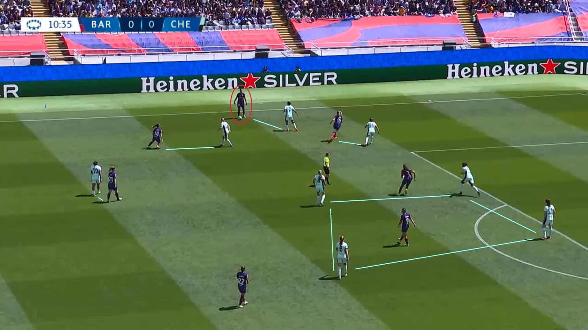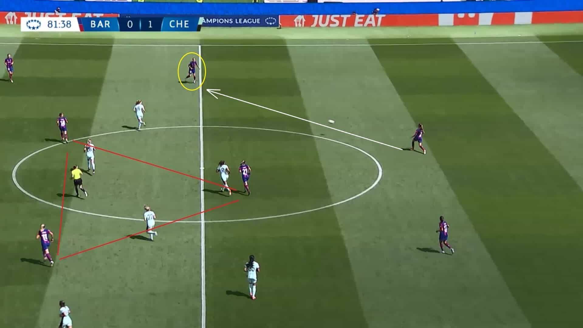 There were several reasons for this, one of which was that the defending champions could implement more direct tactics. Guijarro was capable of making the aerial passes that Giráldez felt would bypass the Chelsea Women midfield threat. This did lead to more chances being created, as the likes of Caldentey and Paralluelo were found more often.