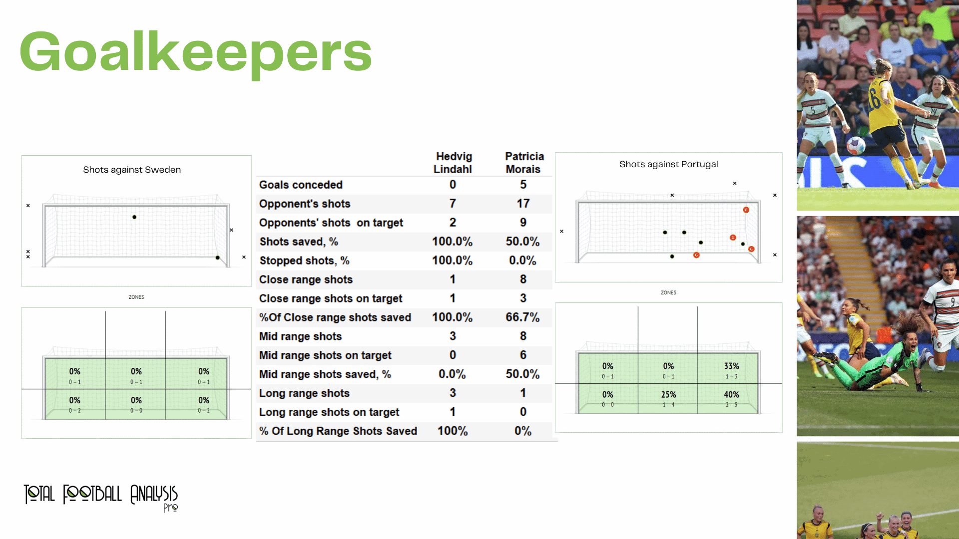 Sunday night saw Sweden play Portugal in the <a href="https://totalfootballanalysis.com/magazine/become-a-womens-euro-2022-expert-before-kickoff-with-the-latest-tfa-magazine">WEURO 2022</a> group stages final round. We've broken down all the key <a href="https://totalfootballanalysis.com/match-analysis/free-download-premier-league-gw8-analytics-reports-data-viz-and-stats">stats</a> for you to digest in this tactical analysis and provide <a href="https://totalfootballanalysis.com/player-analysis/but-what-does-that-visual-actually-tell-us">insights</a> around; * shot maps * pass flow * heatmaps * defensive actions * average positions and much more! We also try to answer some questions for you with the visuals; Who was Sweden's biggest threat? Who made the most recoveries in the opposition half? Who had the highest xG in the match? To navigate the stats gallery simply click on the numbers to move through the pages. <h2><em>Lineups and average positions</em></h2> <a href="https://totalfootballanalysis.com/wp-content/uploads/2022/07/3-24.jpg"><img class="aligncenter size-large wp-image-328902" src="https://totalfootballanalysis.com/wp-content/uploads/2022/07/3-24-1024x576.jpg" alt="WEURO 2022: Sweden vs Portugal - data viz, stats and insights" width="640" height="360" /></a> <a href="https://totalfootballanalysis.com/wp-content/uploads/2022/07/4-24.jpg"><img class="aligncenter size-large wp-image-328903" src="https://totalfootballanalysis.com/wp-content/uploads/2022/07/4-24-1024x576.jpg" alt="WEURO 2022: Sweden vs Portugal - data viz, stats and insights" width="640" height="360" /></a> <a href="https://totalfootballanalysis.com/wp-content/uploads/2022/07/5-23.png"><img class="aligncenter size-large wp-image-328904" src="https://totalfootballanalysis.com/wp-content/uploads/2022/07/5-23-1024x576.png" alt="WEURO 2022: Sweden vs Portugal - data viz, stats and insights" width="640" height="360" /></a> <a href="https://totalfootballanalysis.com/wp-content/uploads/2022/07/6-23.png"><img class="aligncenter size-large wp-image-328912" src="https://totalfootballanalysis.com/wp-content/uploads/2022/07/6-23-1024x576.png" alt="WEURO 2022: Sweden vs Portugal - data viz, stats and insights" width="640" height="360" /></a><!--nextpage--> <h2><em>Stats and shot maps </em></h2> <a href="https://totalfootballanalysis.com/wp-content/uploads/2022/07/7-22.png"><img class="aligncenter size-large wp-image-328905" src="https://totalfootballanalysis.com/wp-content/uploads/2022/07/7-22-1024x576.png" alt="WEURO 2022: Sweden vs Portugal - data viz, stats and insights" width="640" height="360" /></a><!--nextpage--> <h2><em>Pass flow and zones</em></h2> <a href="https://totalfootballanalysis.com/wp-content/uploads/2022/07/9-25.png"><img class="aligncenter size-large wp-image-328906" src="https://totalfootballanalysis.com/wp-content/uploads/2022/07/9-25-1024x576.png" alt="WEURO 2022: Sweden vs Portugal - data viz, stats and insights" width="640" height="360" /></a> <a href="https://totalfootballanalysis.com/wp-content/uploads/2022/07/10-24.png"><img class="aligncenter size-large wp-image-328907" src="https://totalfootballanalysis.com/wp-content/uploads/2022/07/10-24-1024x576.png" alt="WEURO 2022: Sweden vs Portugal - data viz, stats and insights" width="640" height="360" /></a> <a href="https://totalfootballanalysis.com/wp-content/uploads/2022/07/11-23.png"><img class="aligncenter size-large wp-image-328908" src="https://totalfootballanalysis.com/wp-content/uploads/2022/07/11-23-1024x576.png" alt="WEURO 2022: Sweden vs Portugal - data viz, stats and insights" width="640" height="360" /></a><!--nextpage--> <h2><em>Defensive actions</em></h2> <a href="https://totalfootballanalysis.com/wp-content/uploads/2022/07/12-24.png"><img class="aligncenter size-large wp-image-328909" src="https://totalfootballanalysis.com/wp-content/uploads/2022/07/12-24-1024x576.png" alt="WEURO 2022: Sweden vs Portugal - data viz, stats and insights" width="640" height="360" /></a> <a href="https://totalfootballanalysis.com/wp-content/uploads/2022/07/13-23.png"><img class="aligncenter size-large wp-image-328910" src="https://totalfootballanalysis.com/wp-content/uploads/2022/07/13-23-1024x576.png" alt="WEURO 2022: Sweden vs Portugal - data viz, stats and insights" width="640" height="360" /></a><!--nextpage--> <h2><em><strong>Goalkeeping</strong></em></h2> <a href="https://totalfootballanalysis.com/wp-content/uploads/2022/07/14-23.png"><img class="aligncenter size-large wp-image-328911" src="https://totalfootballanalysis.com/wp-content/uploads/2022/07/14-23-1024x576.png" alt="WEURO 2022: Sweden vs Portugal - data viz, stats and insights" width="640" height="360" /></a>