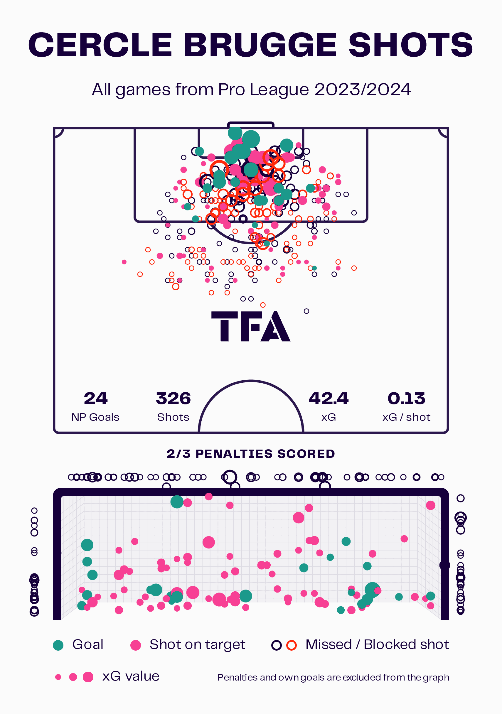 The data viz graphic is also able to illustrate this trouble that Cercle Brugge is having this season in front of goal.