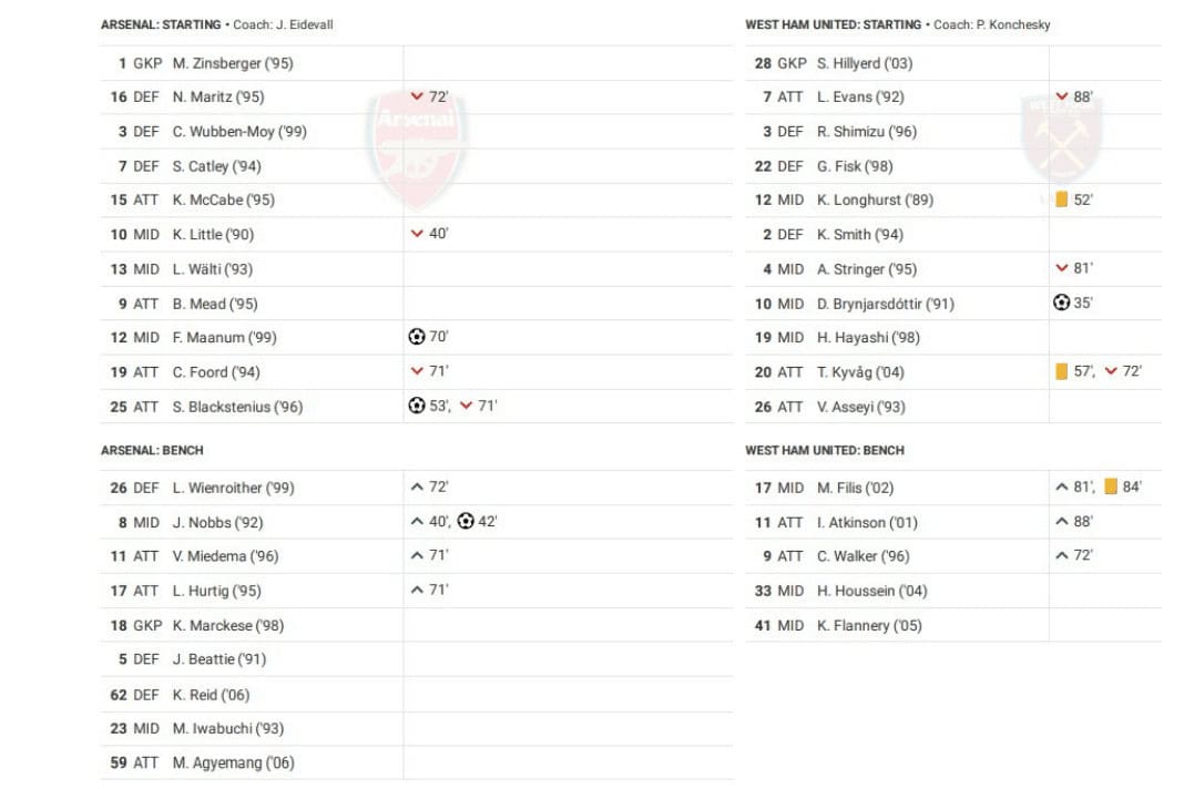 Sunday saw Arsenal vs West Ham United in the Women’s Super League.