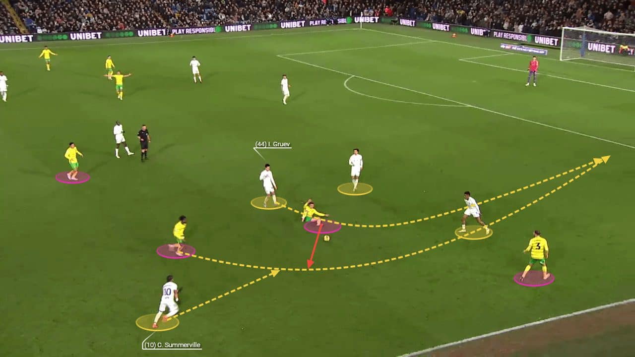 During the German’s debut season at Carrow Road, the Canaries finished 14th before winning the league title 12 months later. Notably, the quick interplays and smart combinations in midfield that Farke demands were far more drilled into the players – suggesting this Leeds squad will become significantly more fluid in attack.