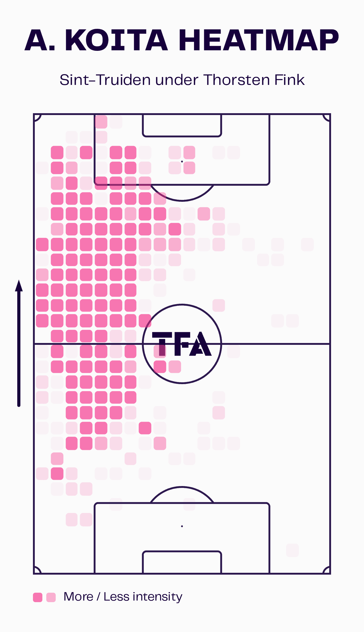 The heat map graphic above shows Aboubakary Koita’s average position during Bernd Hollerbach’s two seasons in charge of the Limburg-based club.
