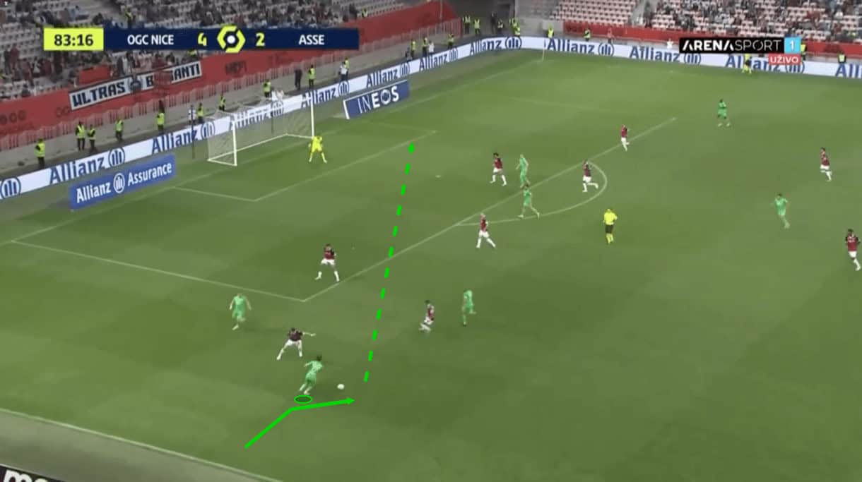 Unfortunately for ASSE, the excellent pass is just about cut out by an opposition defender who was forced to track back and make the interception.