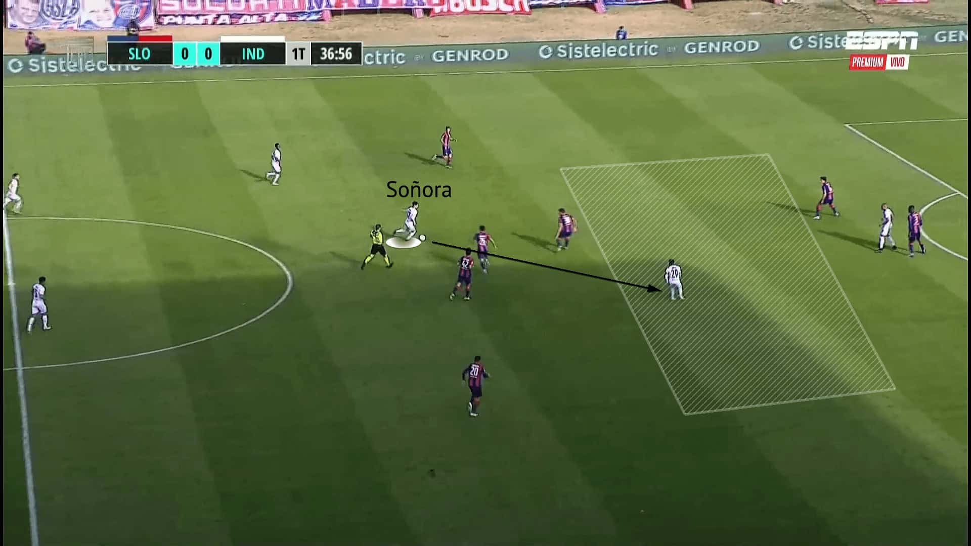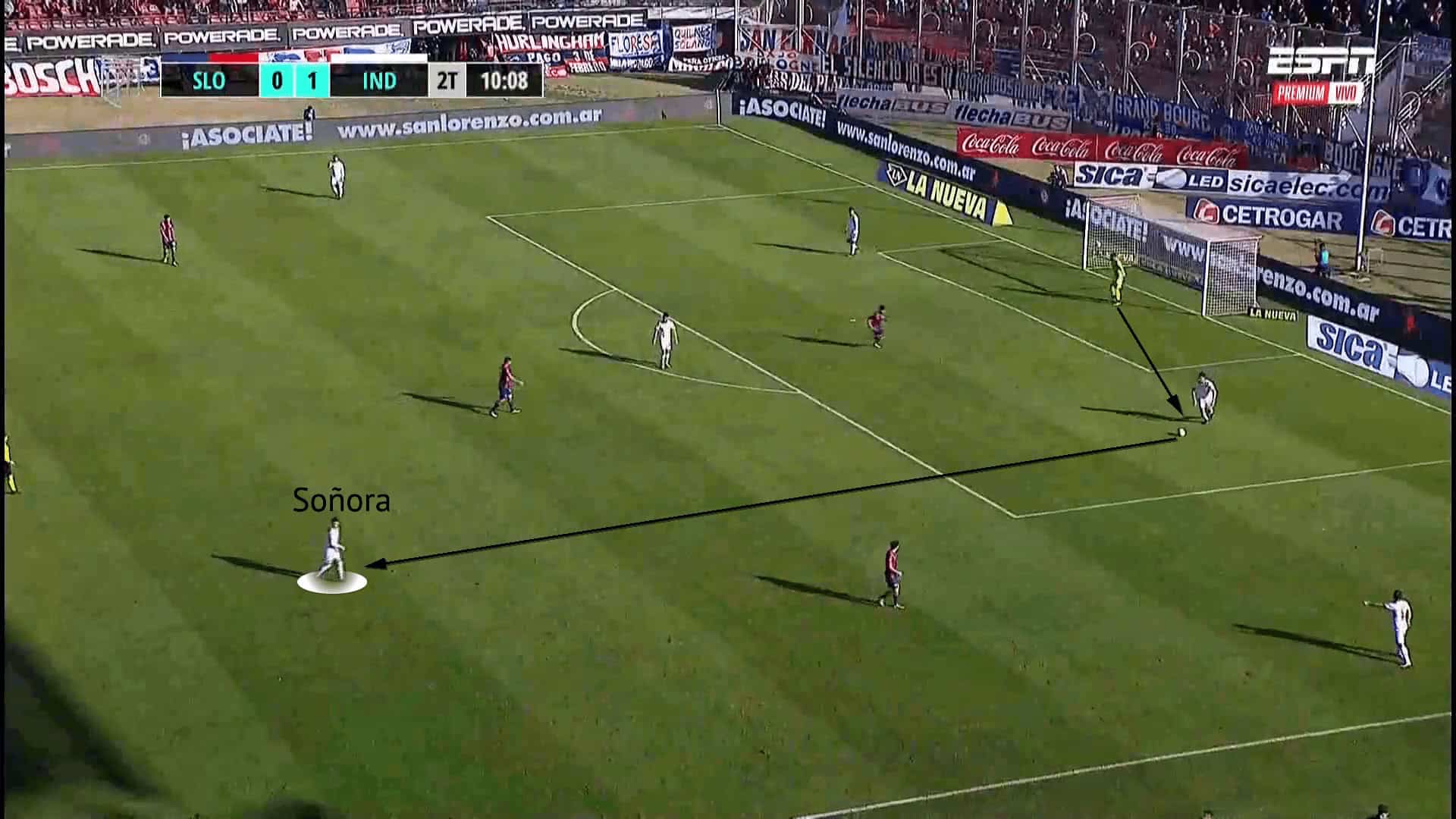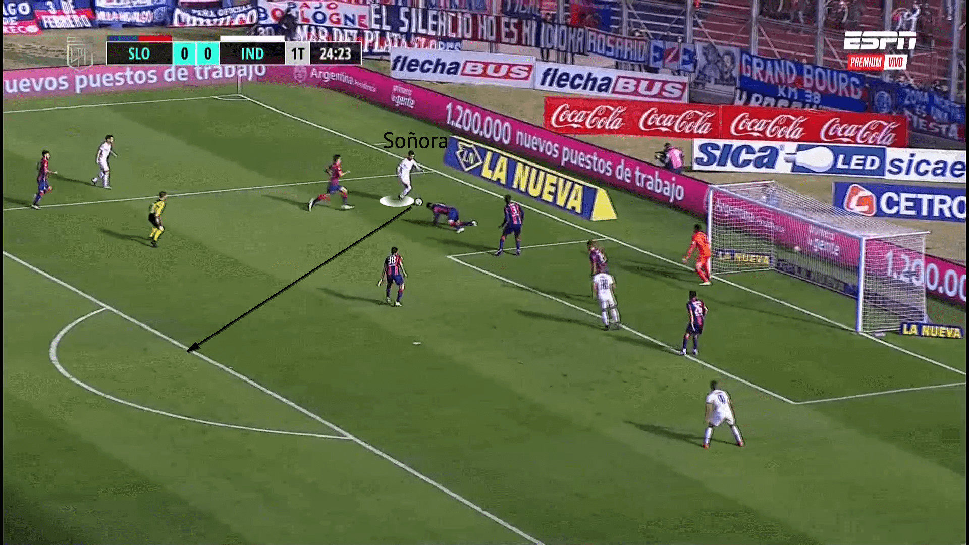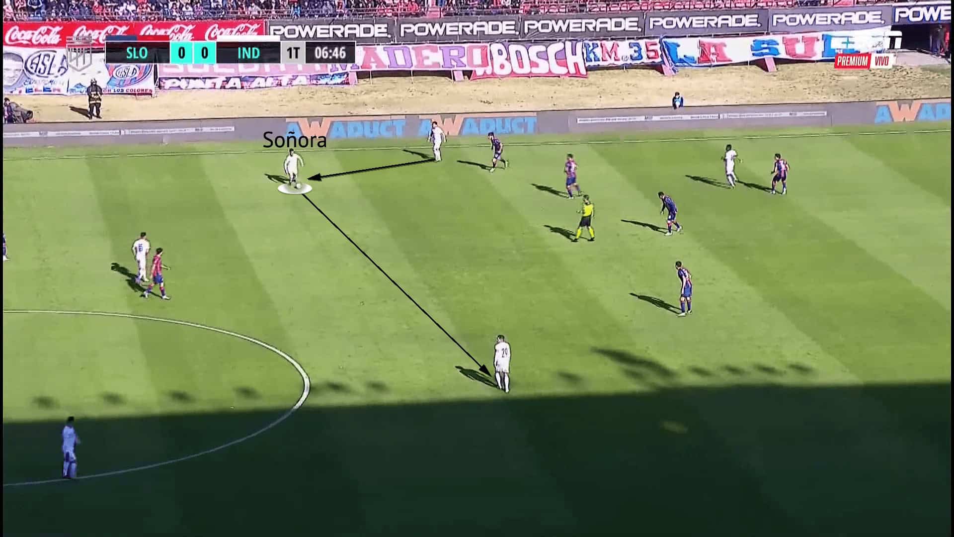 When watching Soñora operate in the final third with shooting opportunities available, it looks like he can rush his technique to ensure getting a shot off, rather than staying composed. This is strange, considering his brilliant composure in deeper phases, but is not a rarity for players when in the final third. It must be stated that Soñora looks like a player confident in his shooting ability, and rightly so, as shown by his six goals from outside the box.