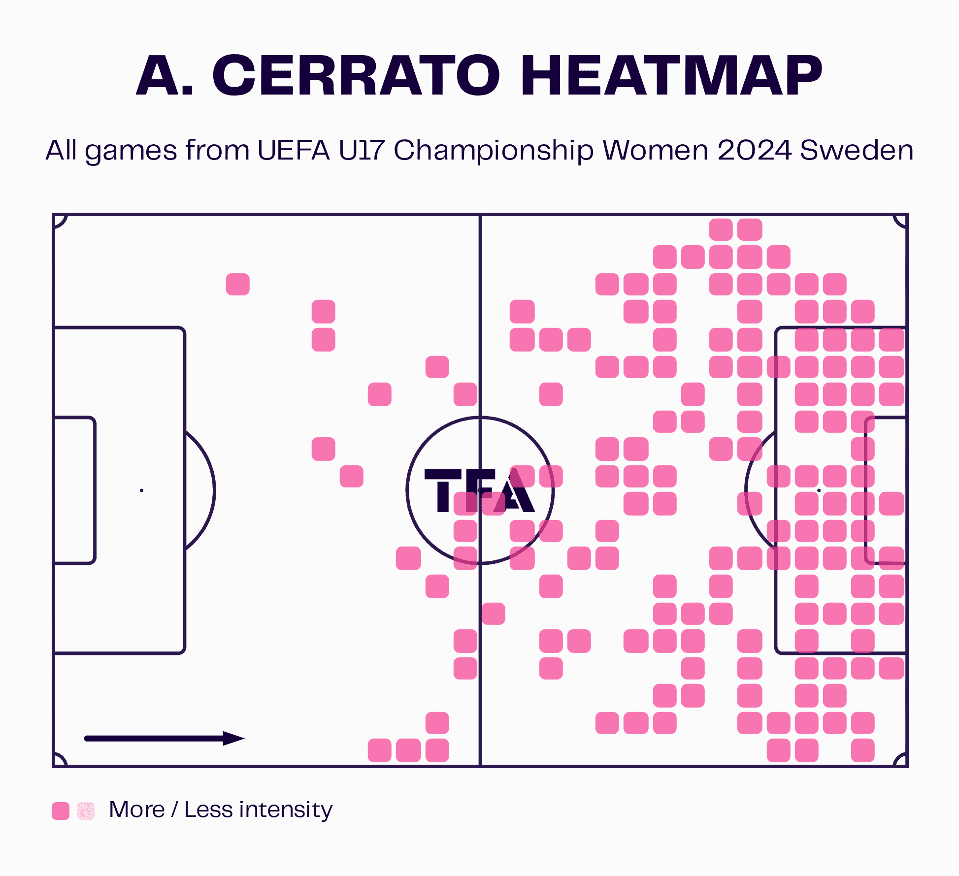 It is this aspect that has allowed Alba Cerrato to demonstrate other parts of her game, with her not only staying up the pitch but also dropping into deeper pockets of space whenever possible.