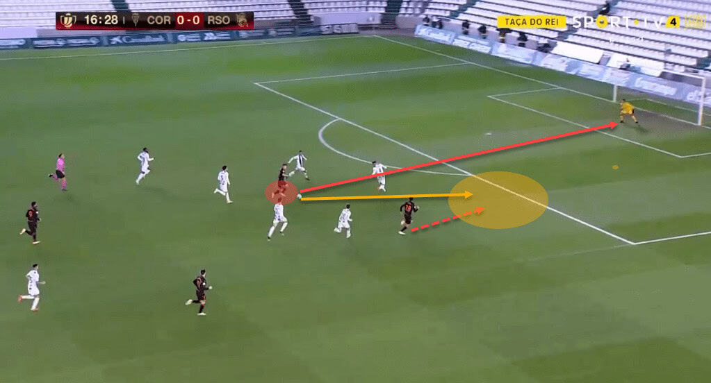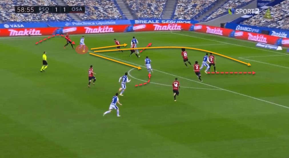 Often, these tactics will ensure Barrenetxea is isolated with just one marker in that area, and should he manage to beat him, the path towards the goal will suddenly open.