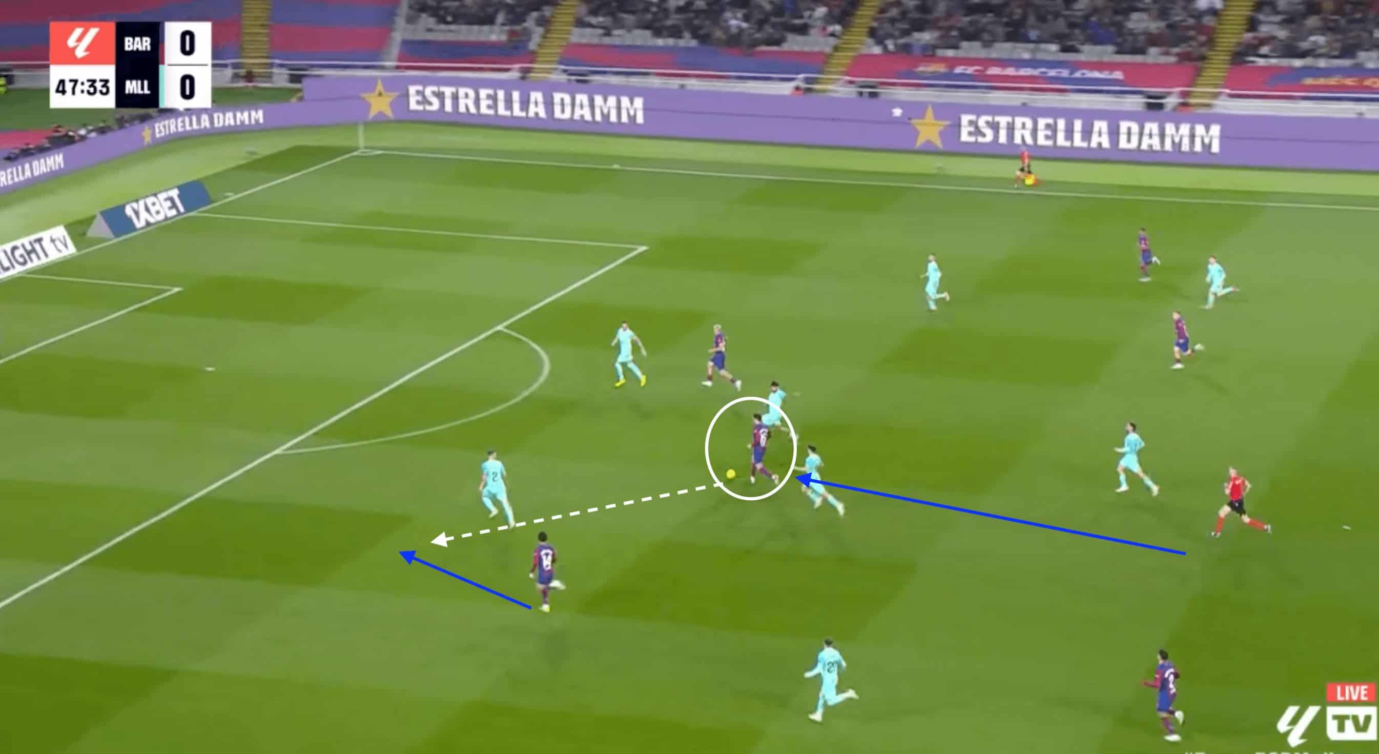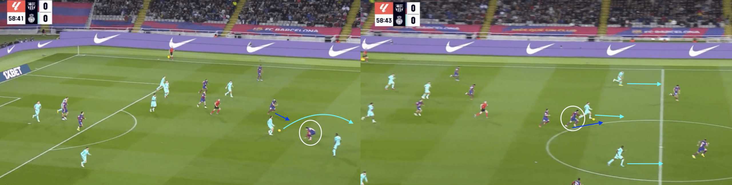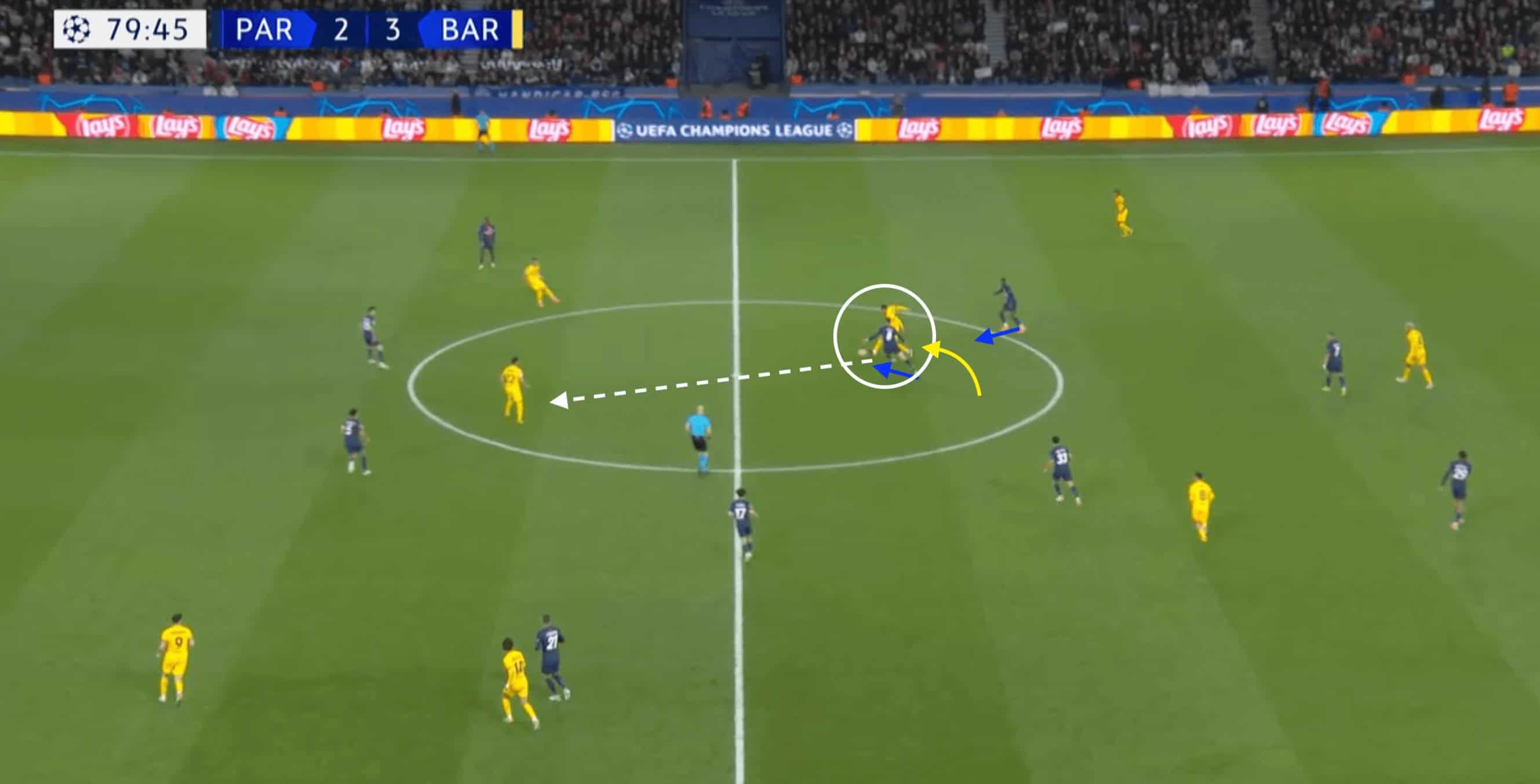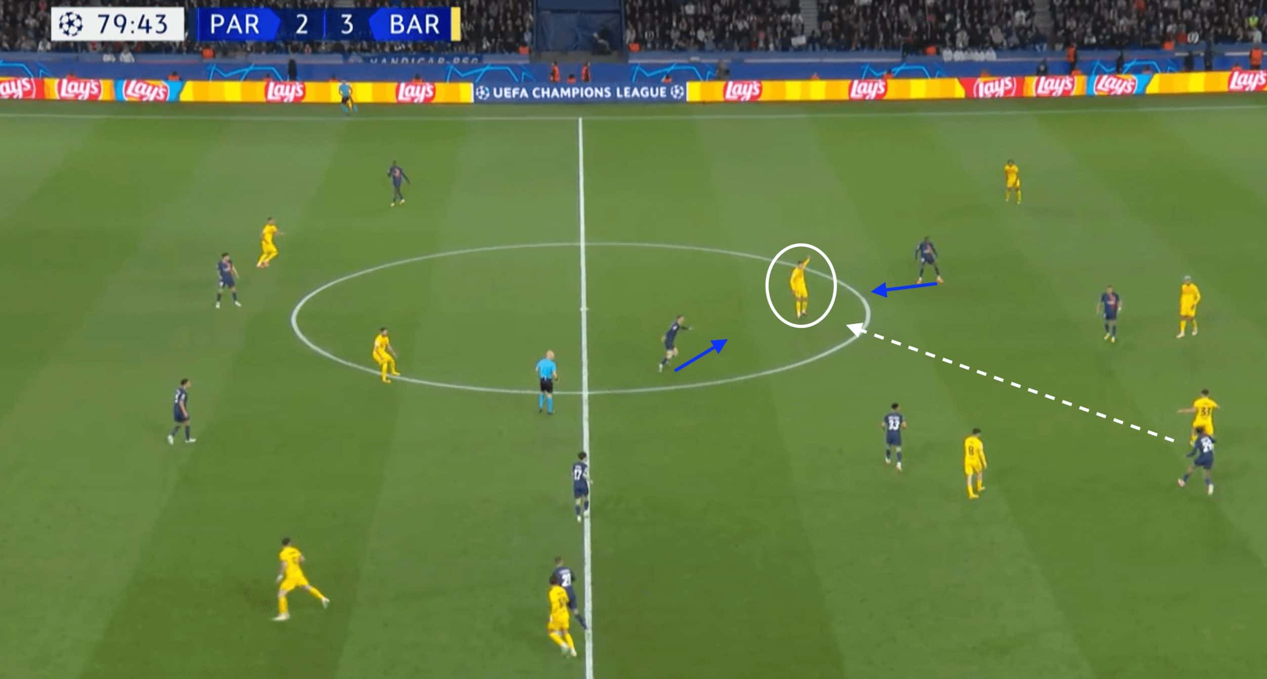 One way in which Christensen has begun to mitigate this has been a higher level of anticipation and reading of incoming passes, something that would appear to be developing with increased minutes in Barcelona’s midfield. In their recent Champions League tie against PSG, Christensen could expertly let Cubarsí’s inbound pass run across his body, allowing him to quickly shift and deliver the ball towards his forward line, completely bypassing two oncoming PSG pressers. For Christensen to be truly comfortable in midfield, such occurrences must be much more natural and frequent.