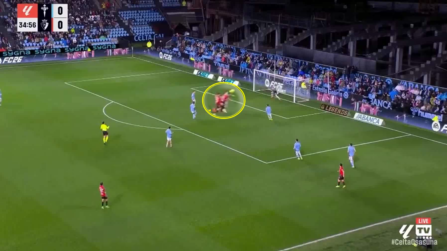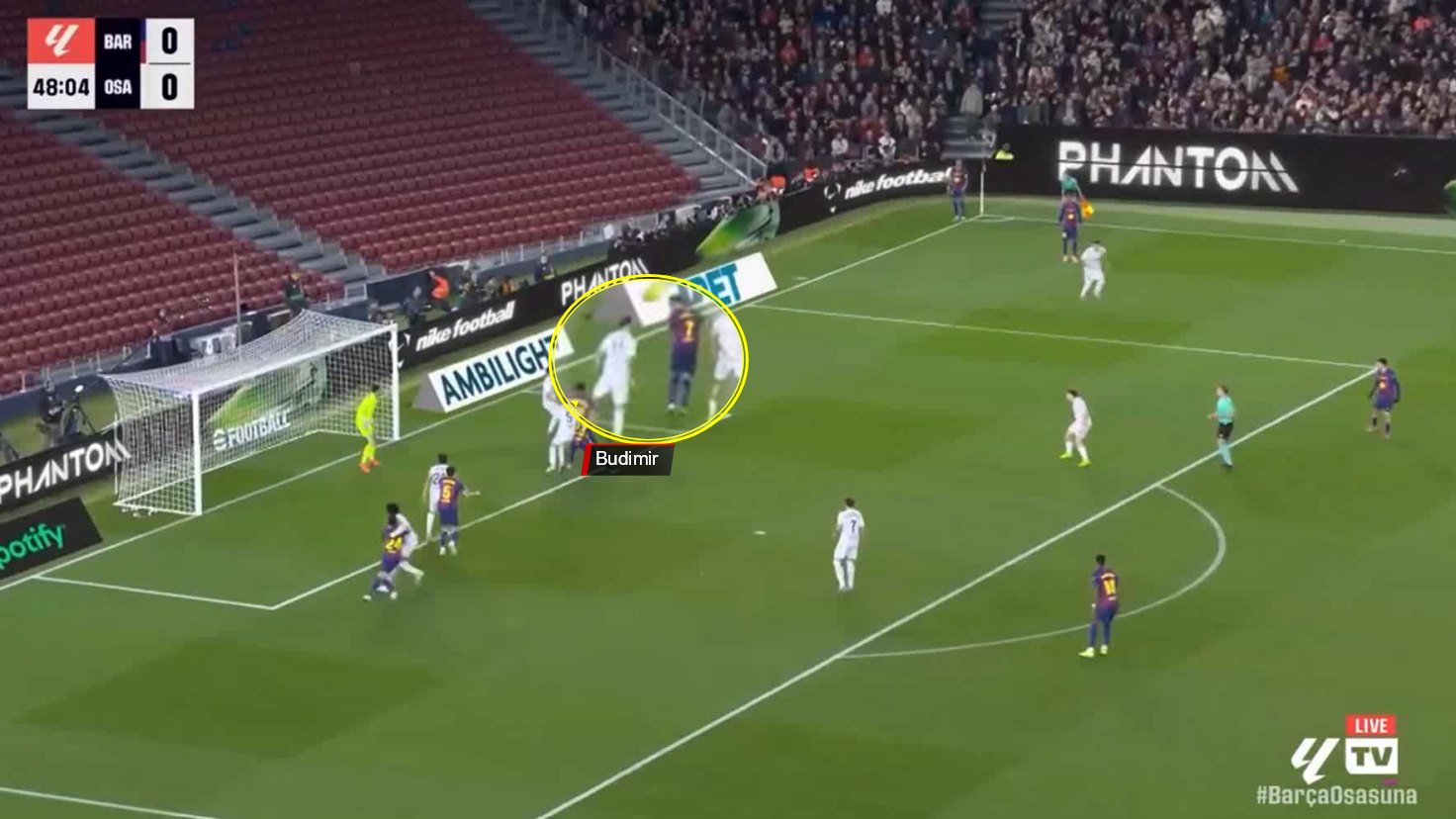 Against Villarreal, the same pattern occurred: Ante Budimir lacked a clear physical advantage and didn’t jump significantly higher than the defender.