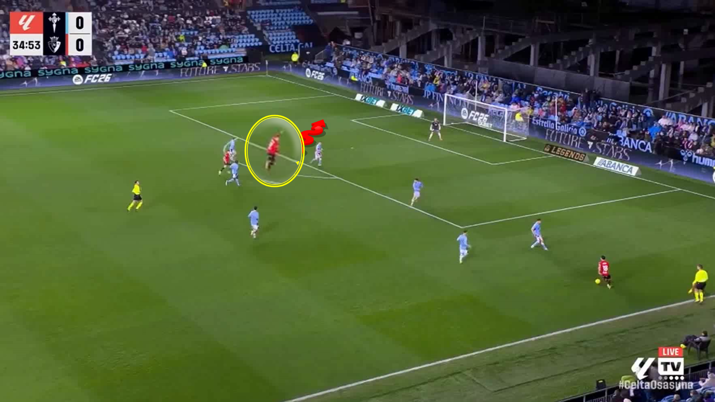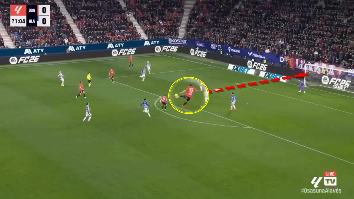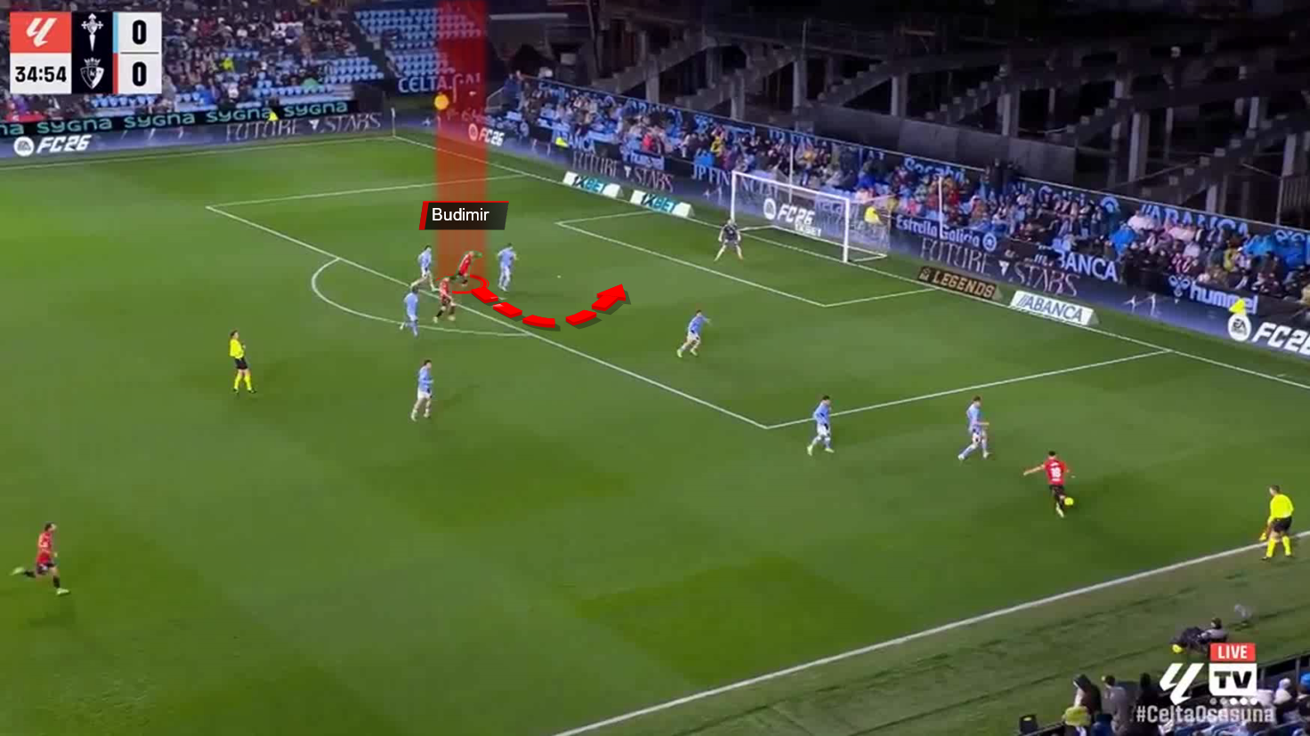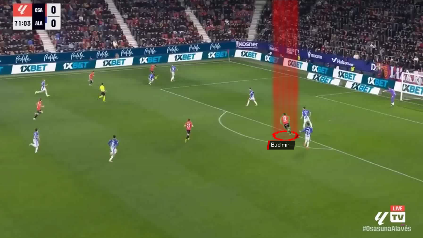 Despite his significant effectiveness within the Osasuna system, Ante Budimir’s impact remains tied to a specific tactical context, which imposes certain clear limitations on him, namely his limited contribution between the lines.