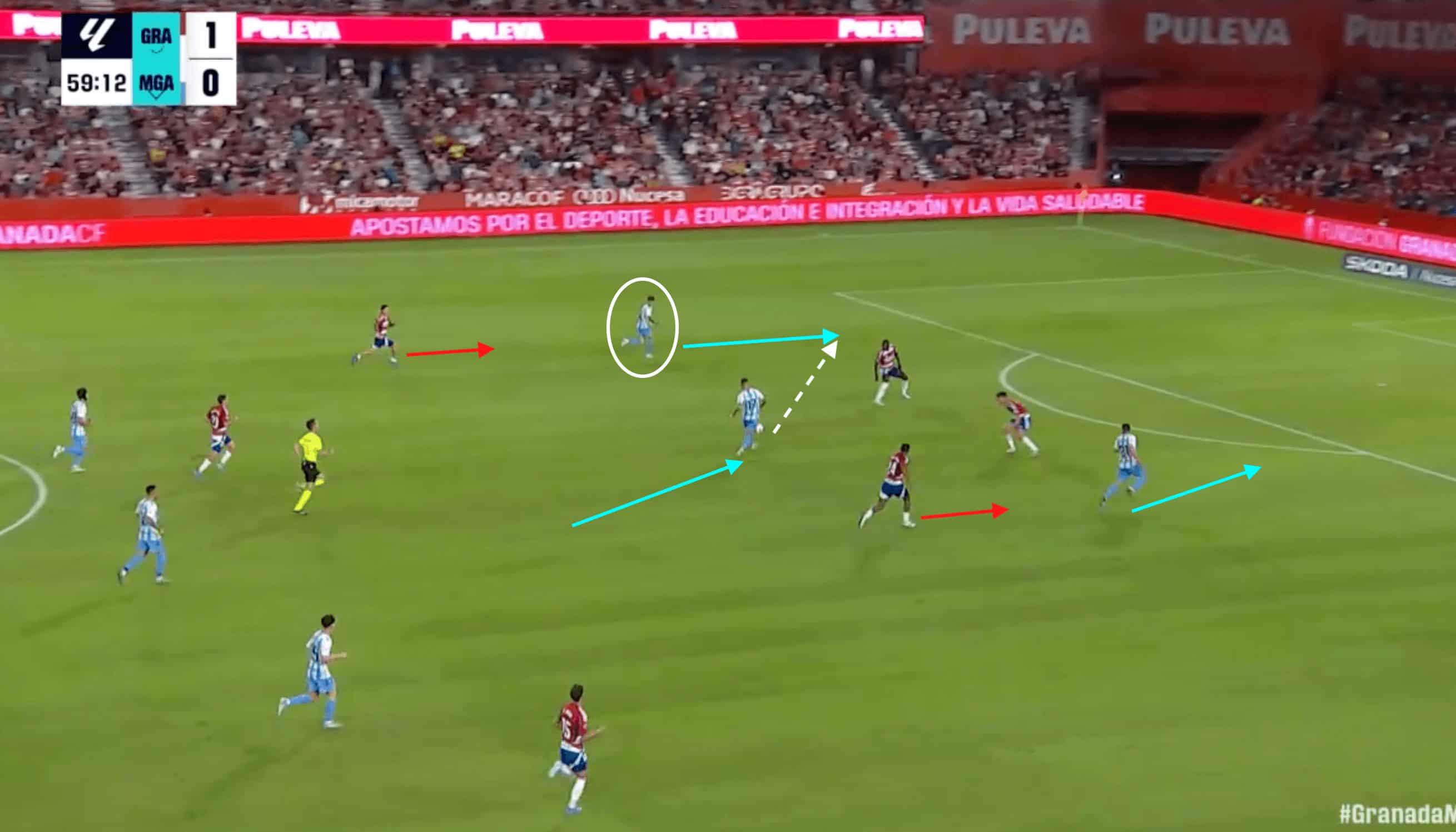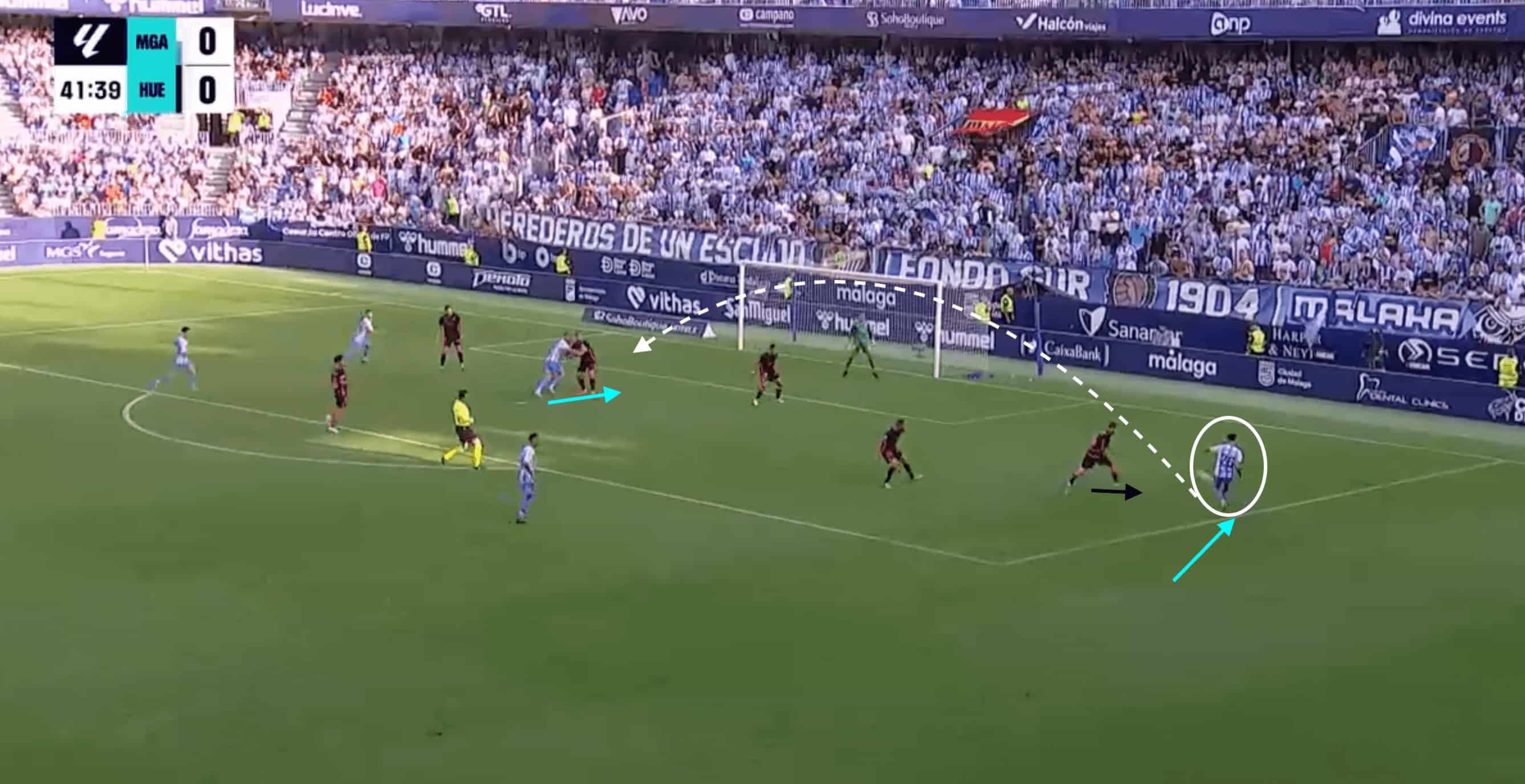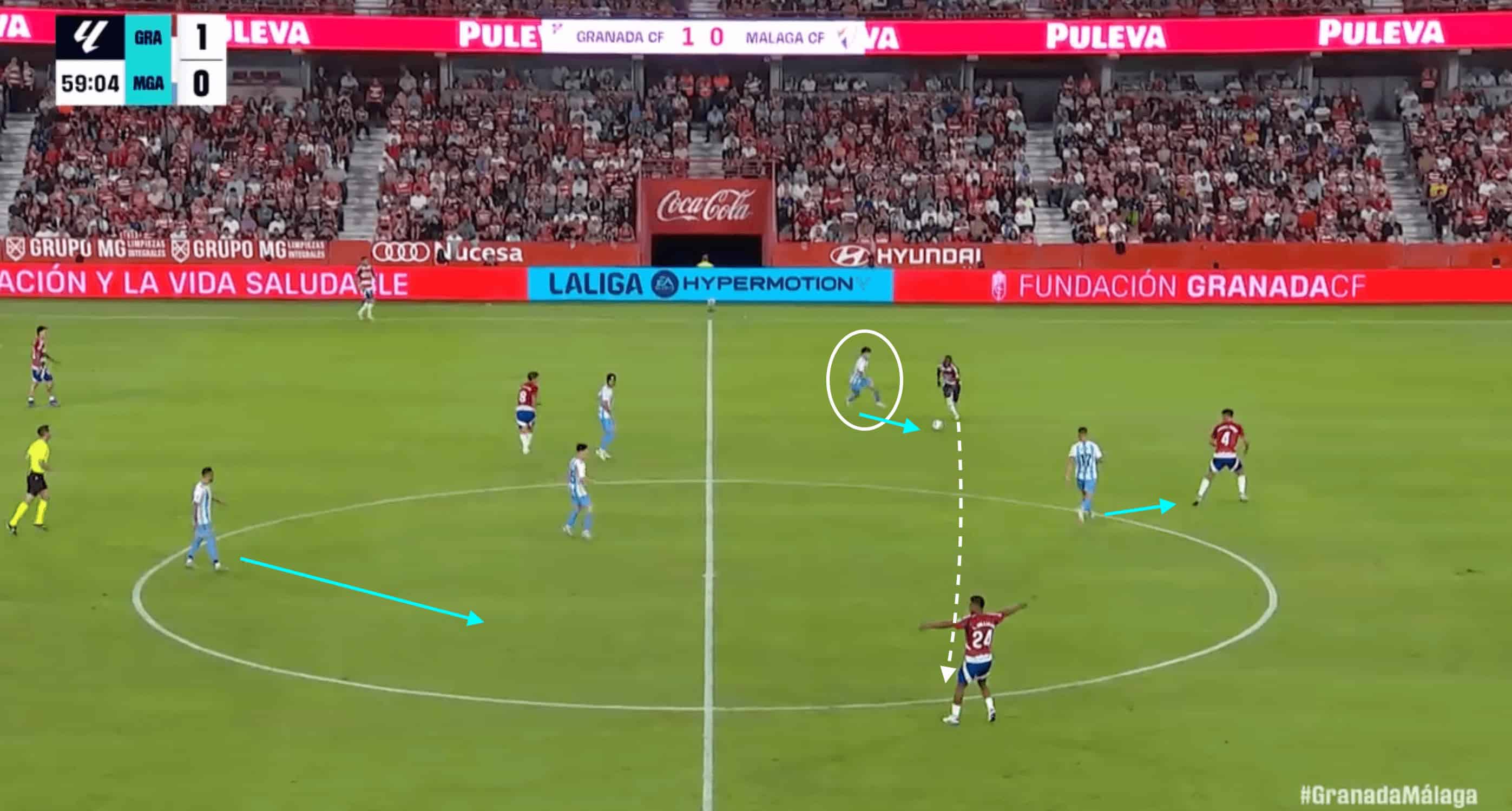 This movement begins to aid Málaga’s numerical superiority through the centre.
