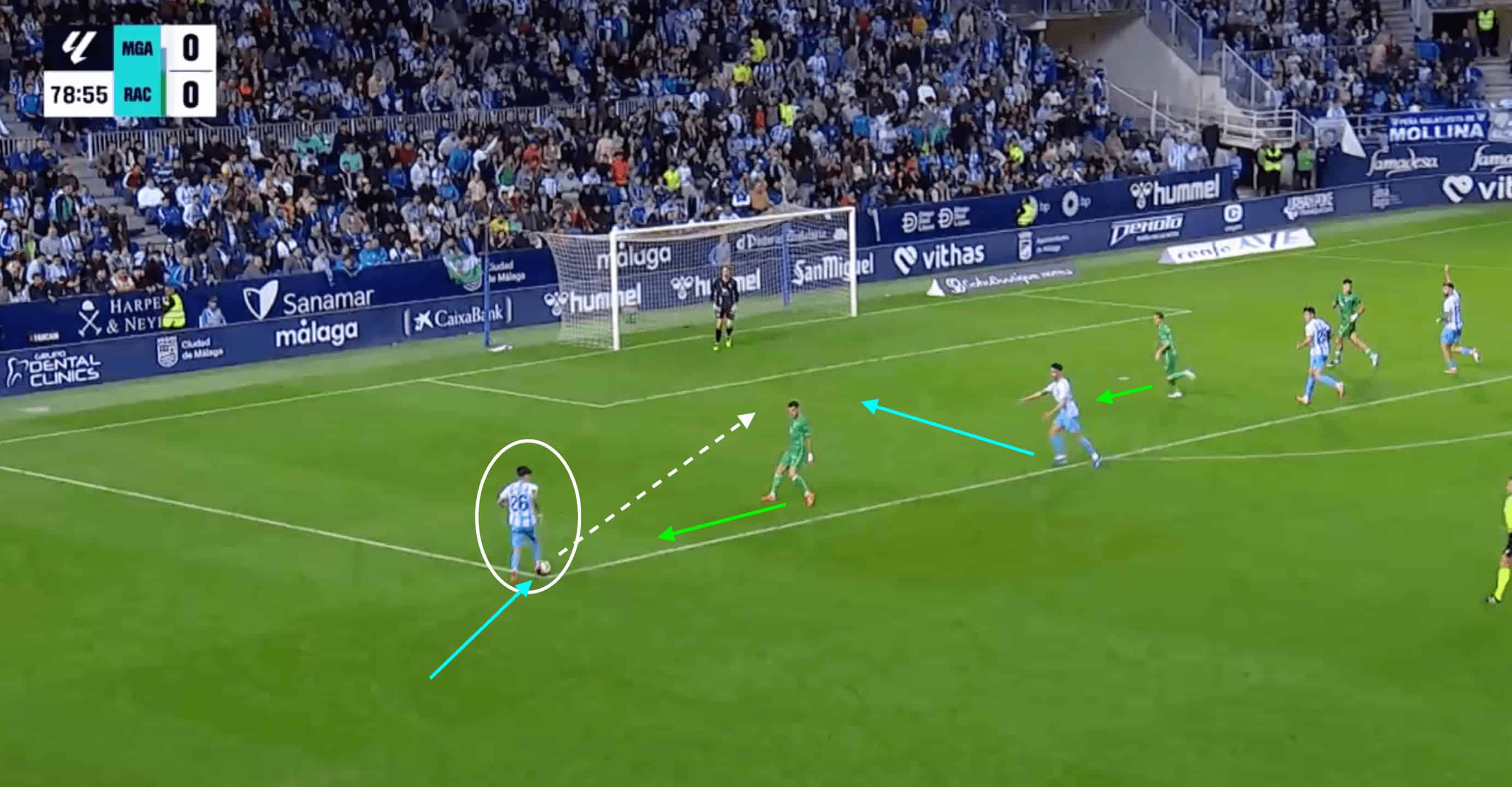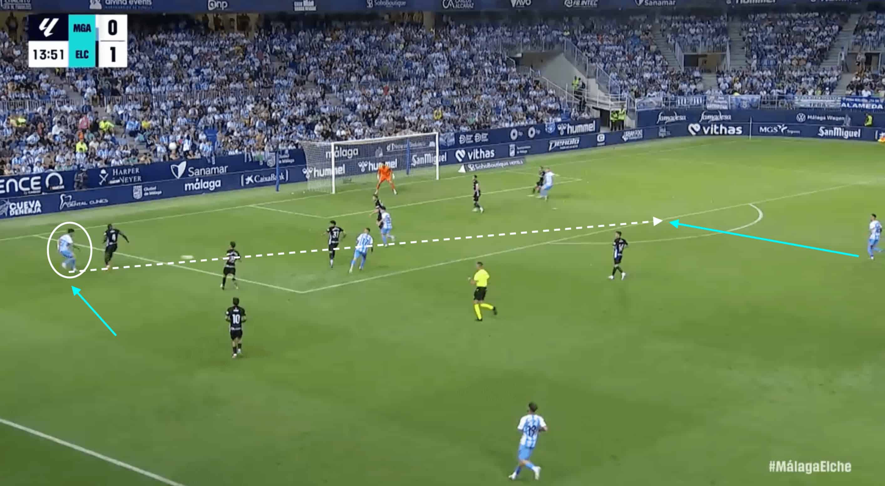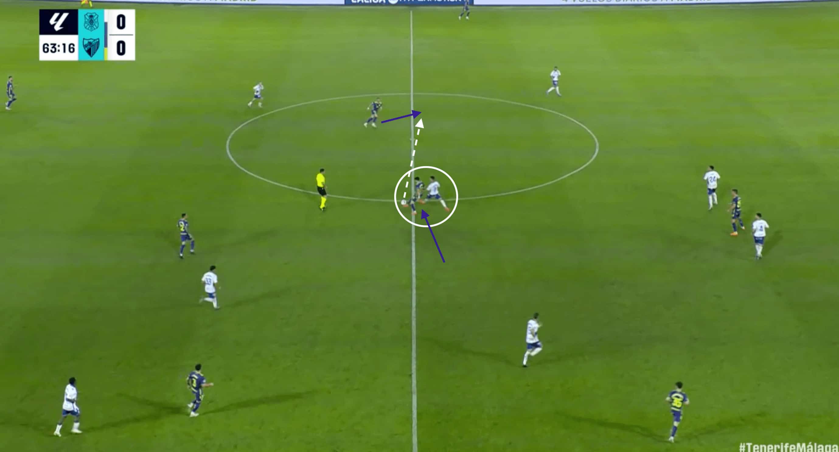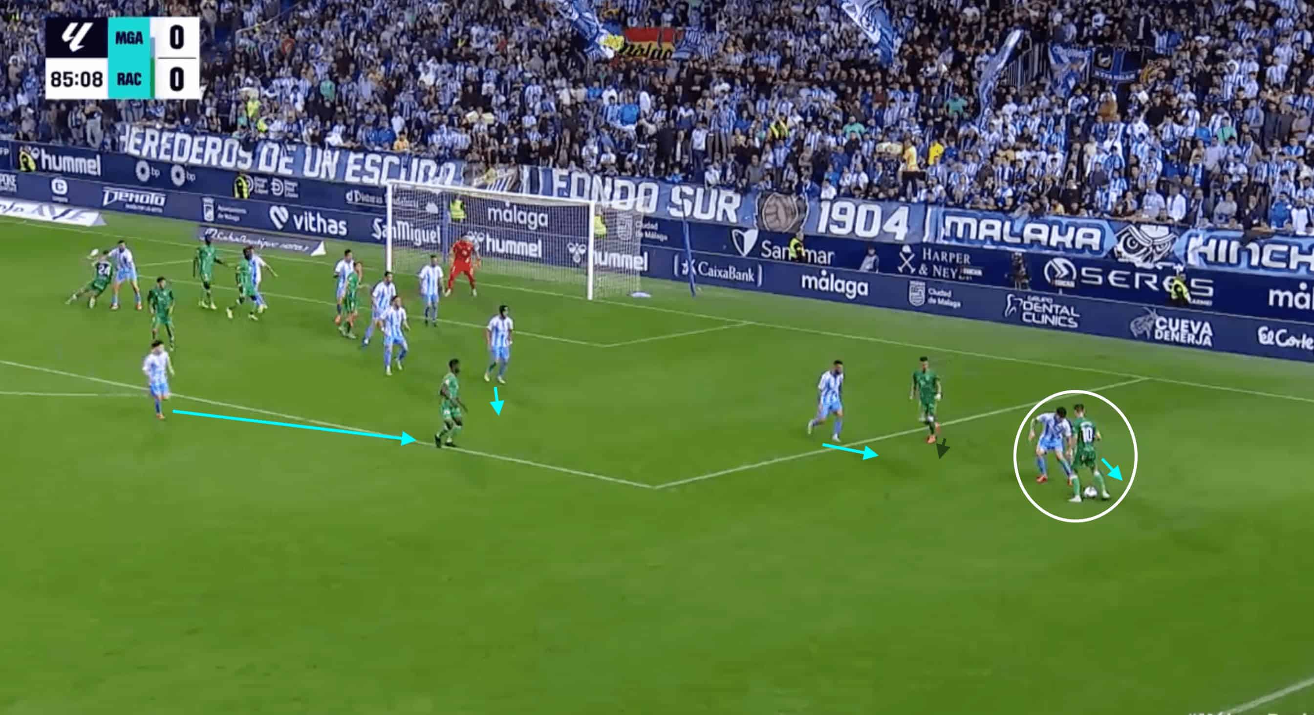 This movement begins to aid Málaga’s numerical superiority through the centre.