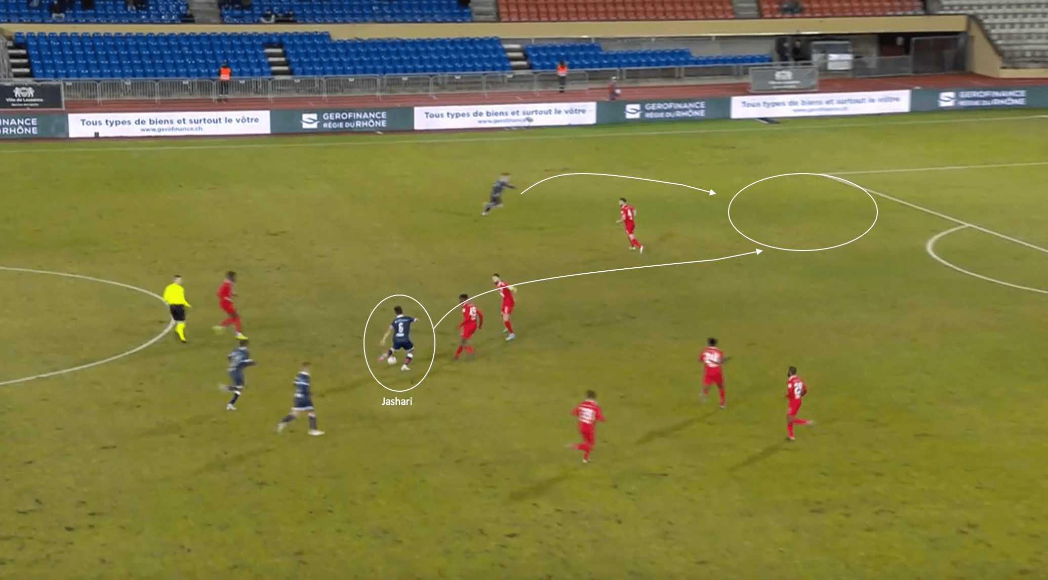 In this attacking phase from Luzern, the Swiss international finds himself in the attacking half of the pitch, operating in the right half-space.