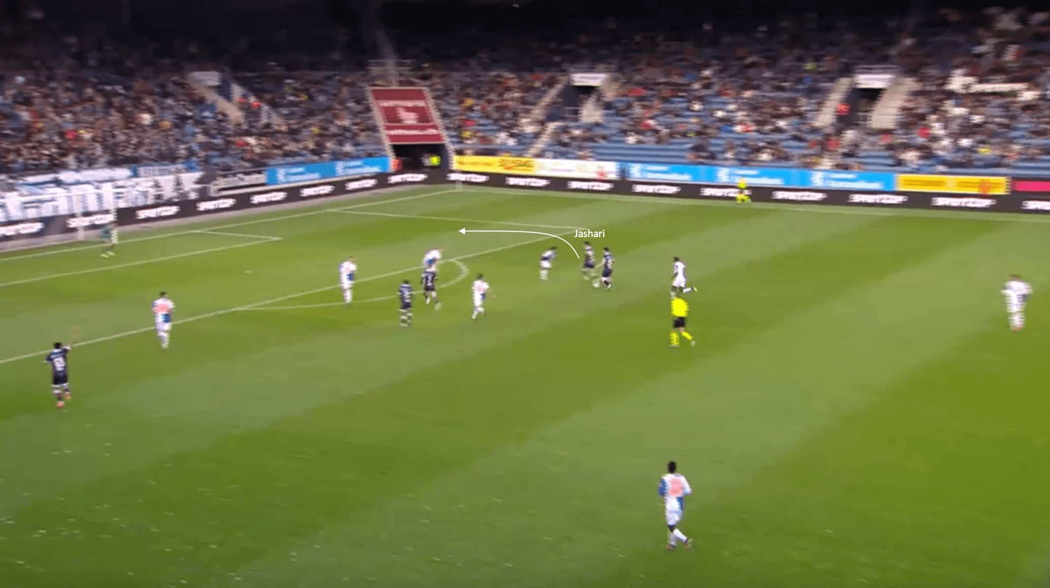 With no opportunities for Jashari to play through the opposition, he looks to play over.