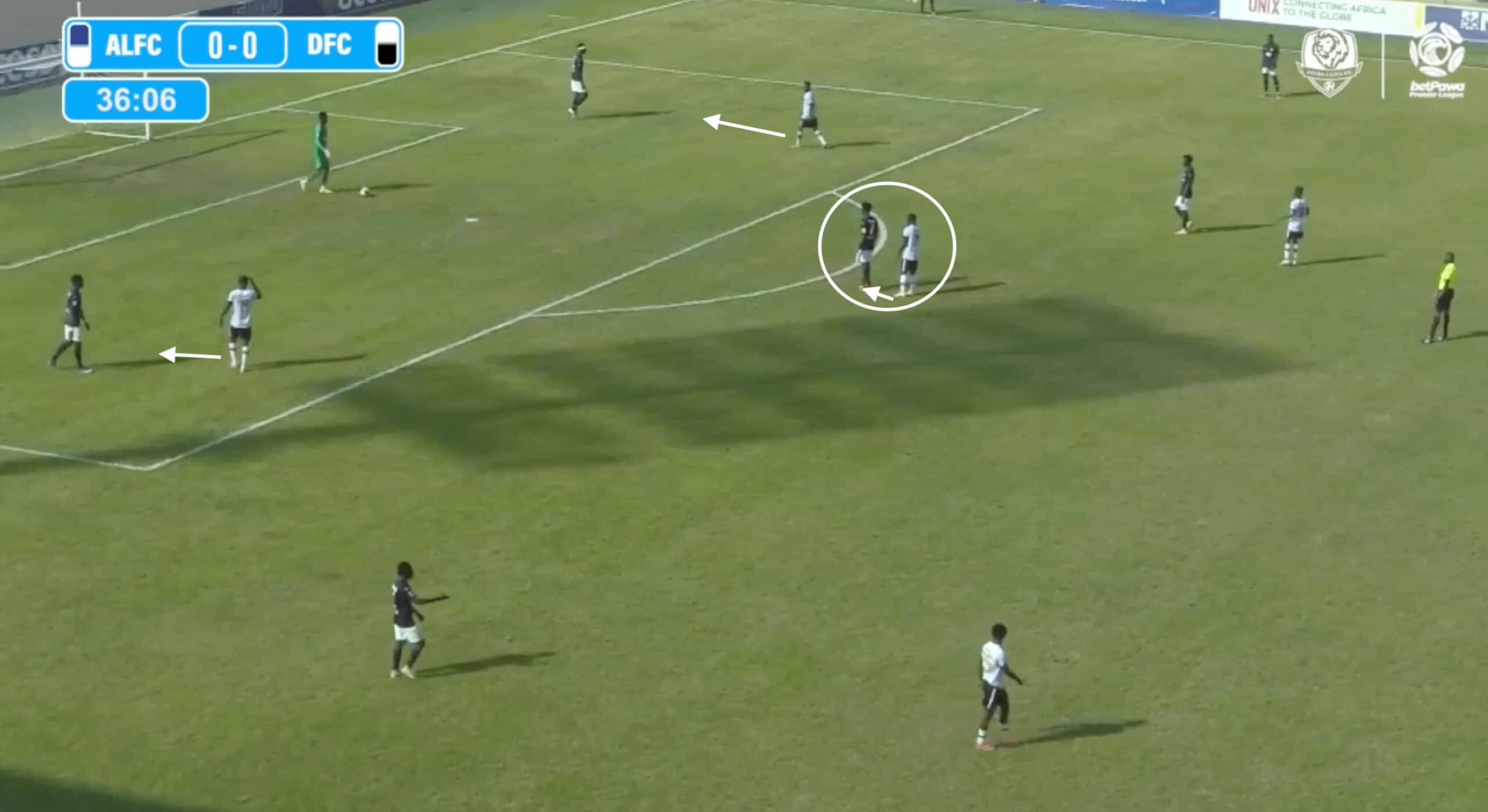 We see Issah slightly late reacting to the forward movement of the Lions’ midfielder when receiving Oduro’s quick throw.