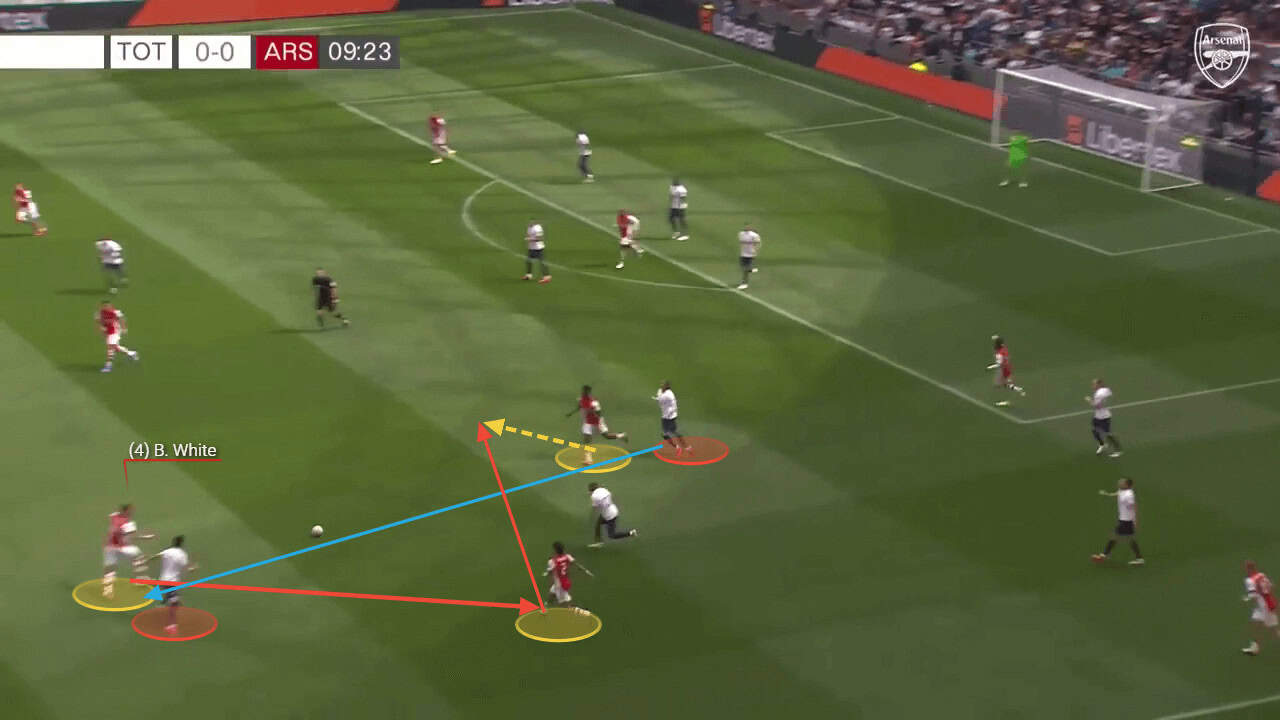 This scout report in the form of a tactical analysis examines how White can help Arsenal in their actions in and out of possession and how he could fit Arteta’s tactics.