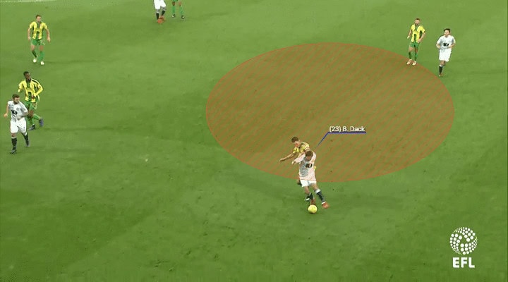 This image and process underlines Dack’s creative mindset. He doesn’t just do things for the sake of it. He completes his actions with the intent of damaging the opposition. Whether that be with a defence-splitting pass or a dribbling action that breaks a team’s high press and allows his side to dominate the pitch with an abundance of possession.