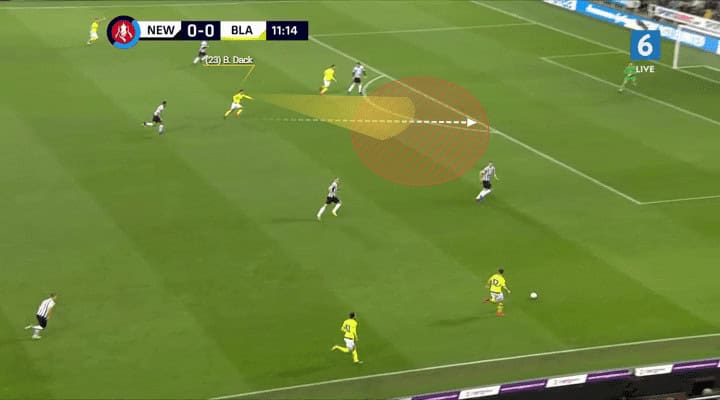 In this game, Dack’s movement was a constant thorn for Newcastle’s back-four, as he consistently created space and opened up goal scoring opportunities with his intelligent movement off-the-ball. With two progressive runs in this game, a stat based off movement intended to move the opposition and create space – Dack was active and looking to damage Newcastle, and so he did scoring one goal.